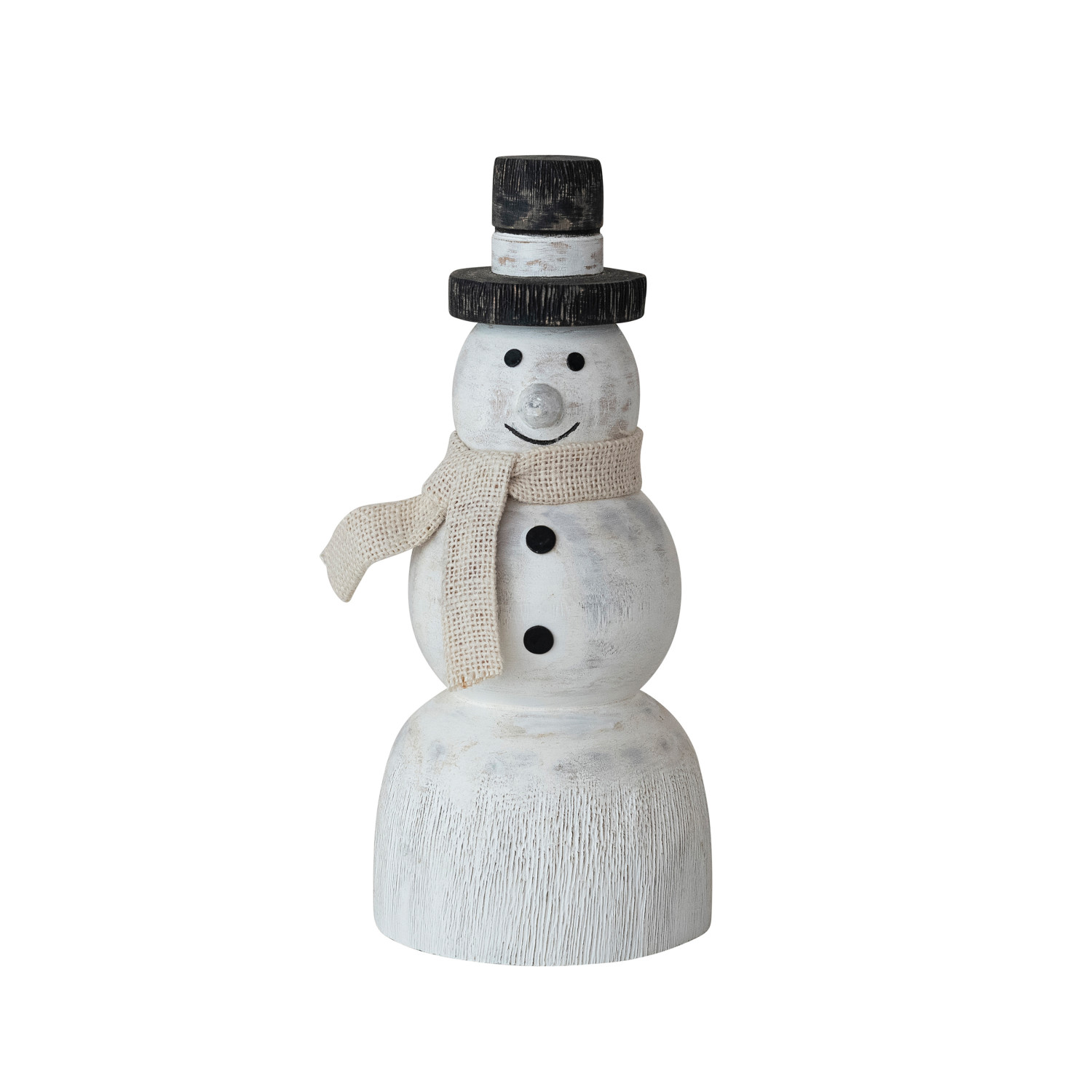 Catalog Name: 4-1/4" Round x 10-1/4"H Handmade Mango Wood Snowman w/ Top Hat & Scarf, White, Black & Natural