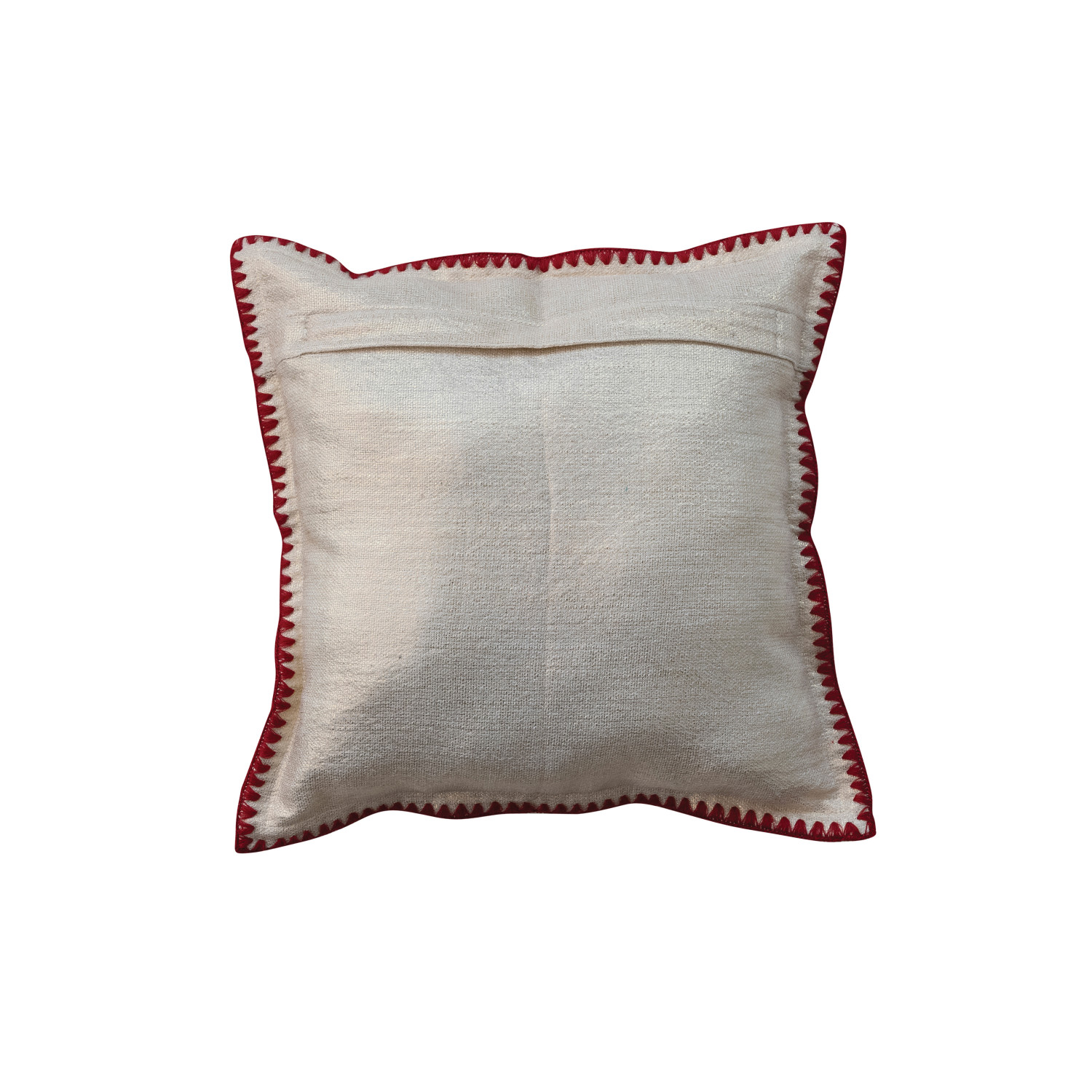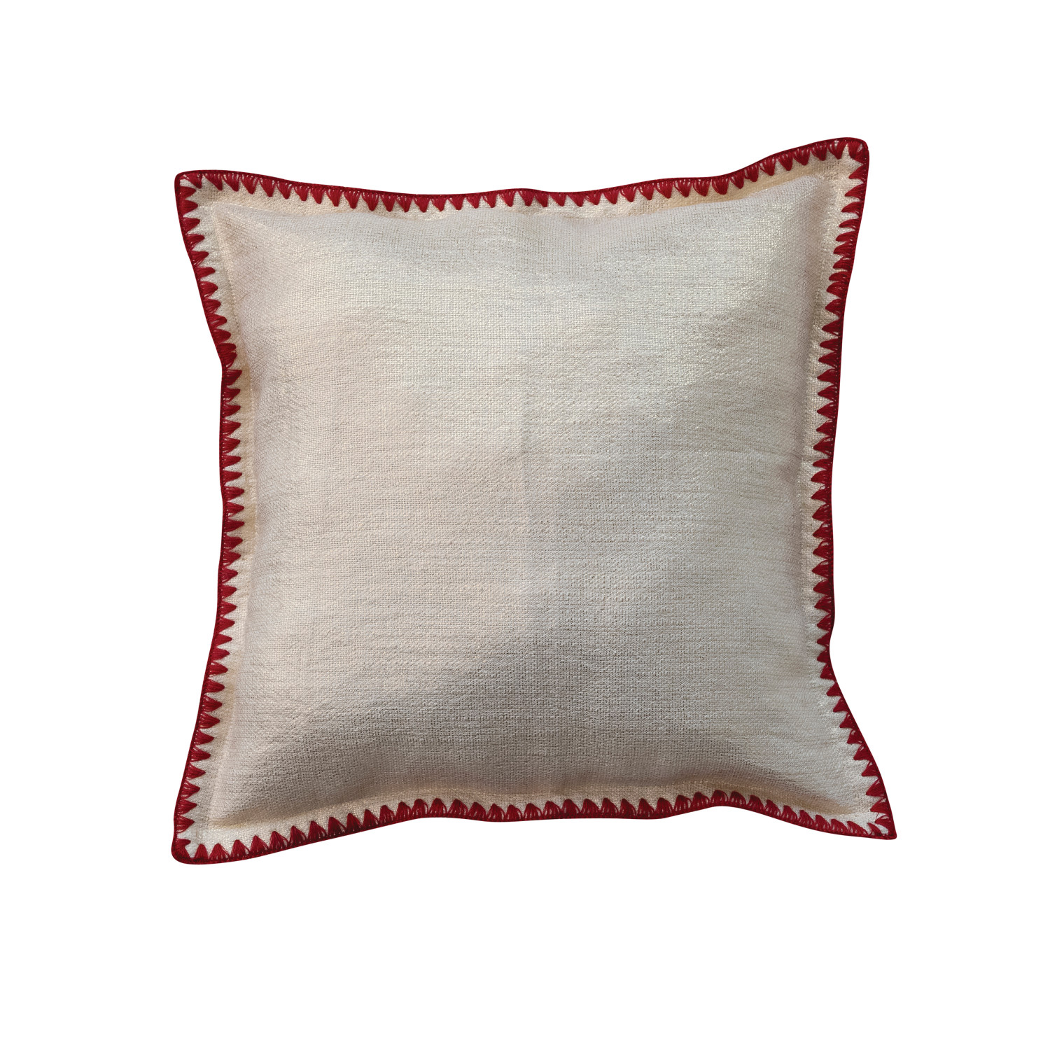 Catalog Name: 12" Square Cotton Printed Pillow w/ Gold Foil & Contrasting Stitched Edge, Natural & Red