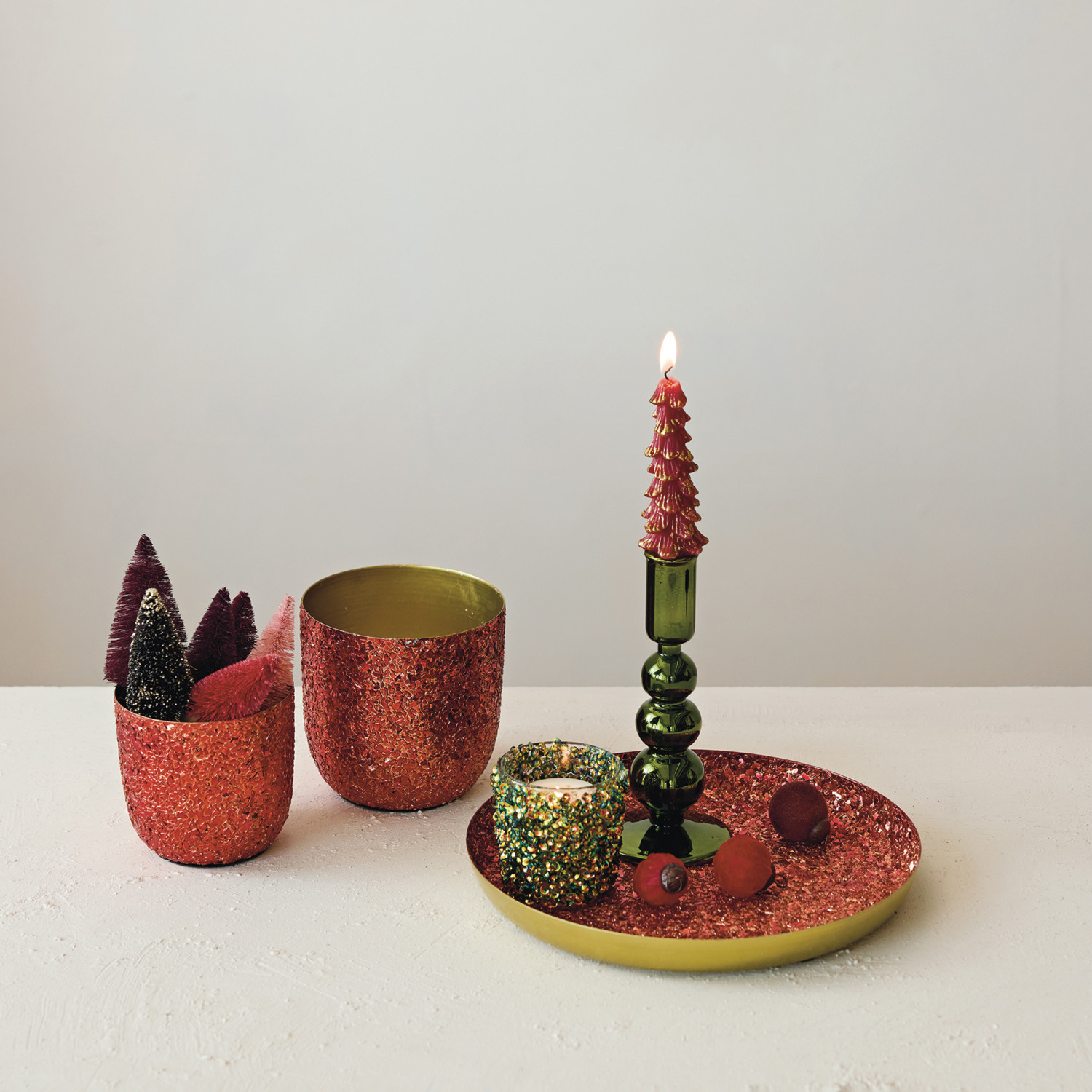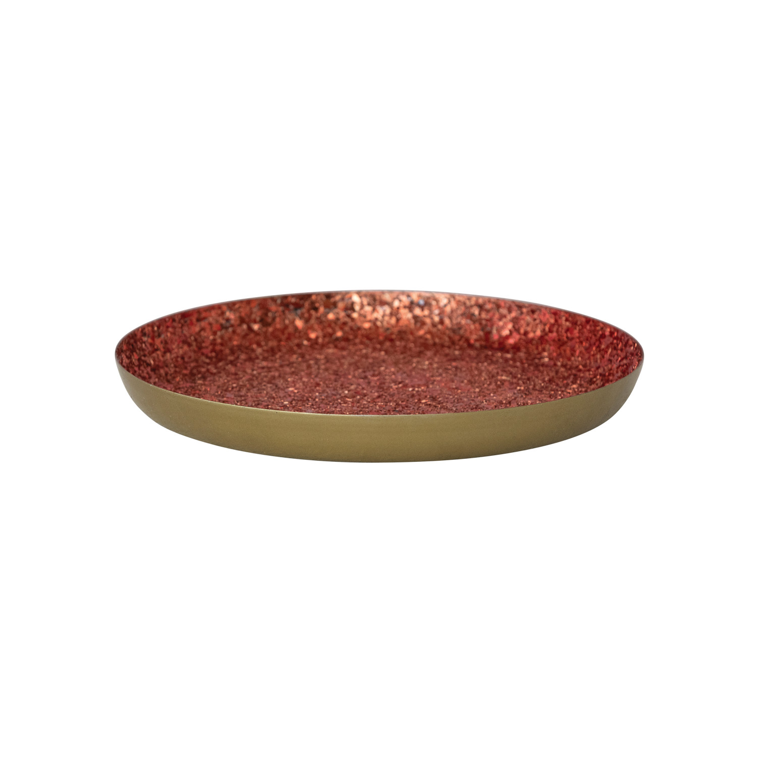 Catalog Name: 9-3/4" Round Decorative Metal Tray w/ Mica Flakes, Red & Gold Finish