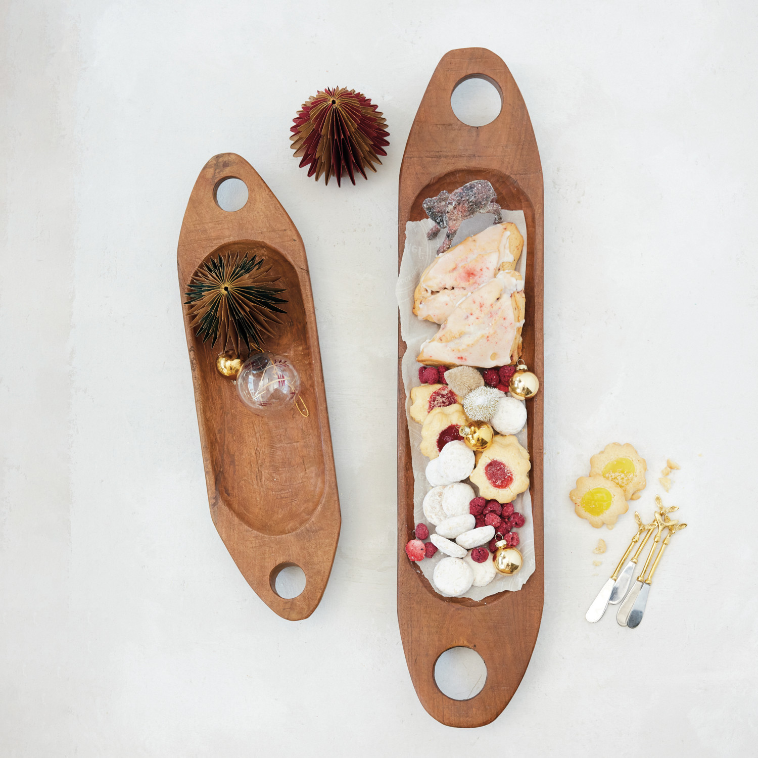 Catalog Name: 30"L x 7"W & 21"L x 6"W Decorative Reclaimed Wood Trays w/ Handles, Natural, Set of 2