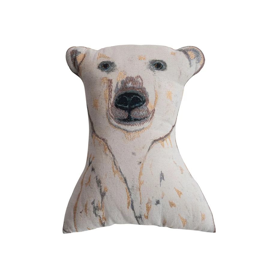 Cotton & Linen Printed Polar Bear Shaped Pillow with Embroidery ©
