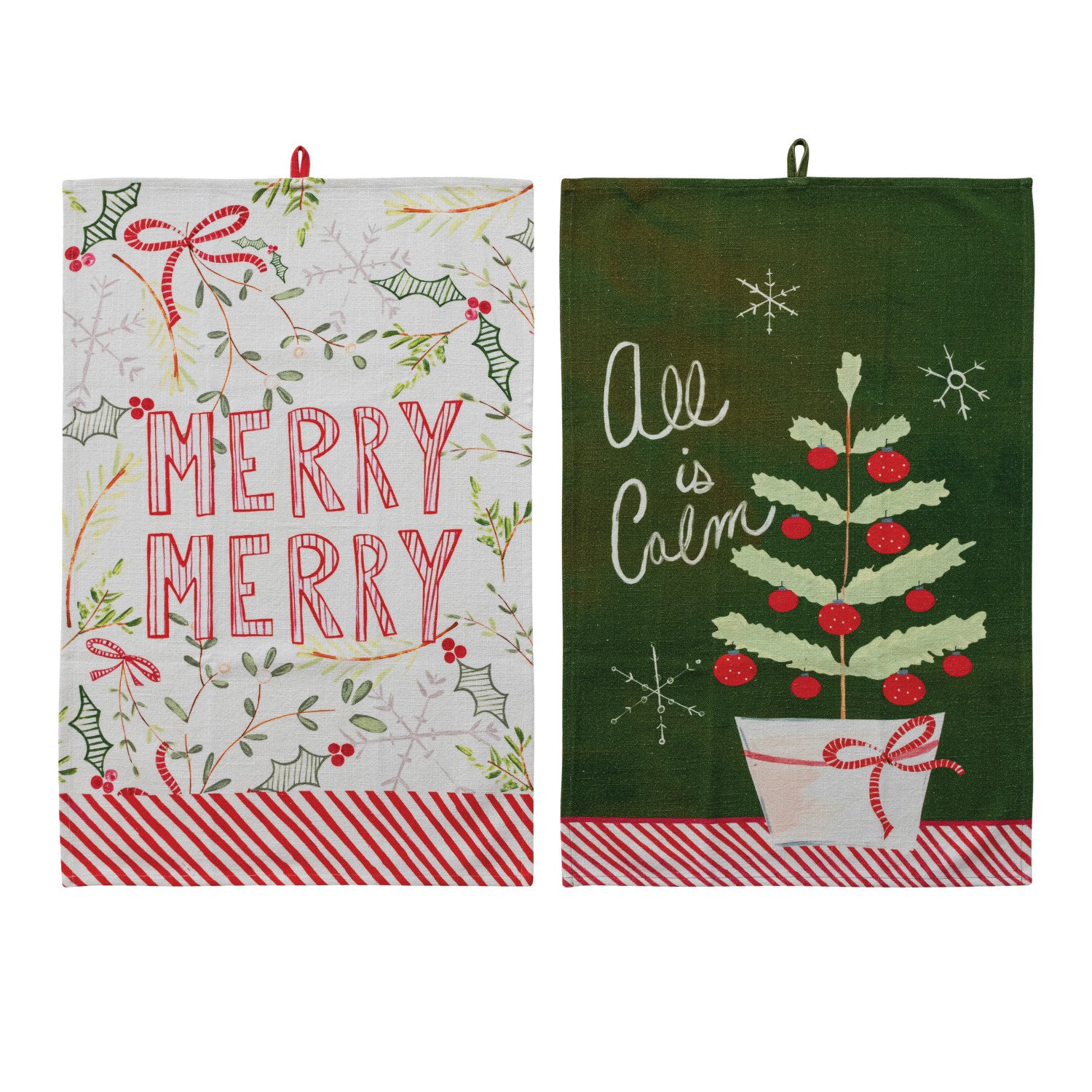 Cotton Slub Printed Tea Towel with Seasonal Image/Saying, 2 Styles ©