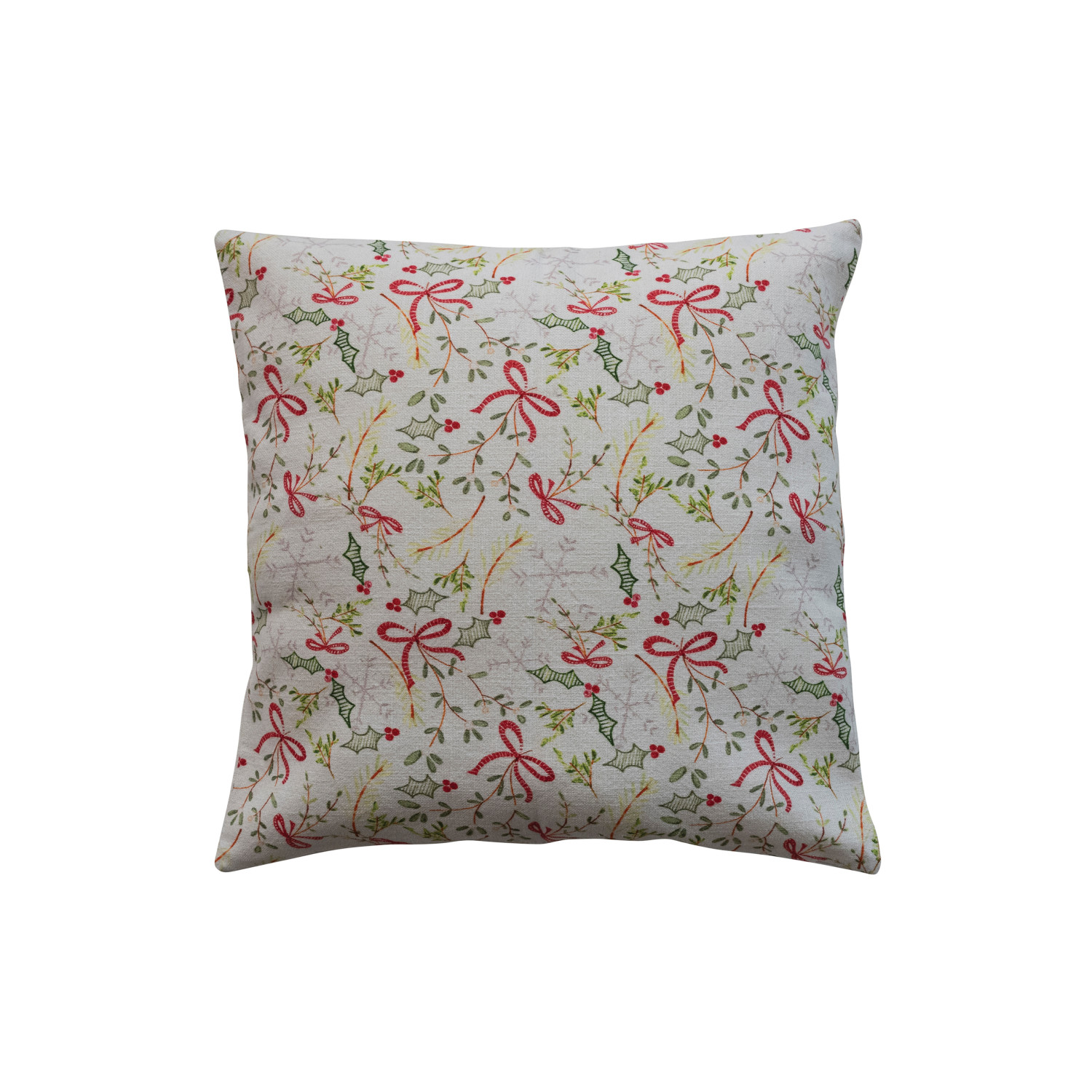 Catalog Name: 18" Square Cotton Printed Pillow w/ Striped Bow, Mistletoe, Pom Poms, Embroidery, Beads & Patterned Back "Home For Christmas", Multi Color ©