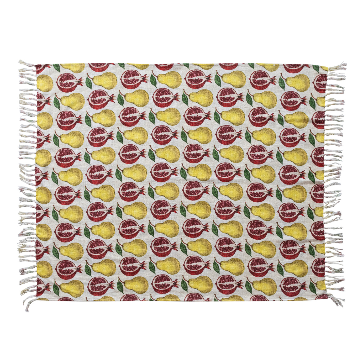Catalog Name: 60"L x 50"W Cotton Printed Throw w/ Fruit Pattern & Fringe, Multi Color ©