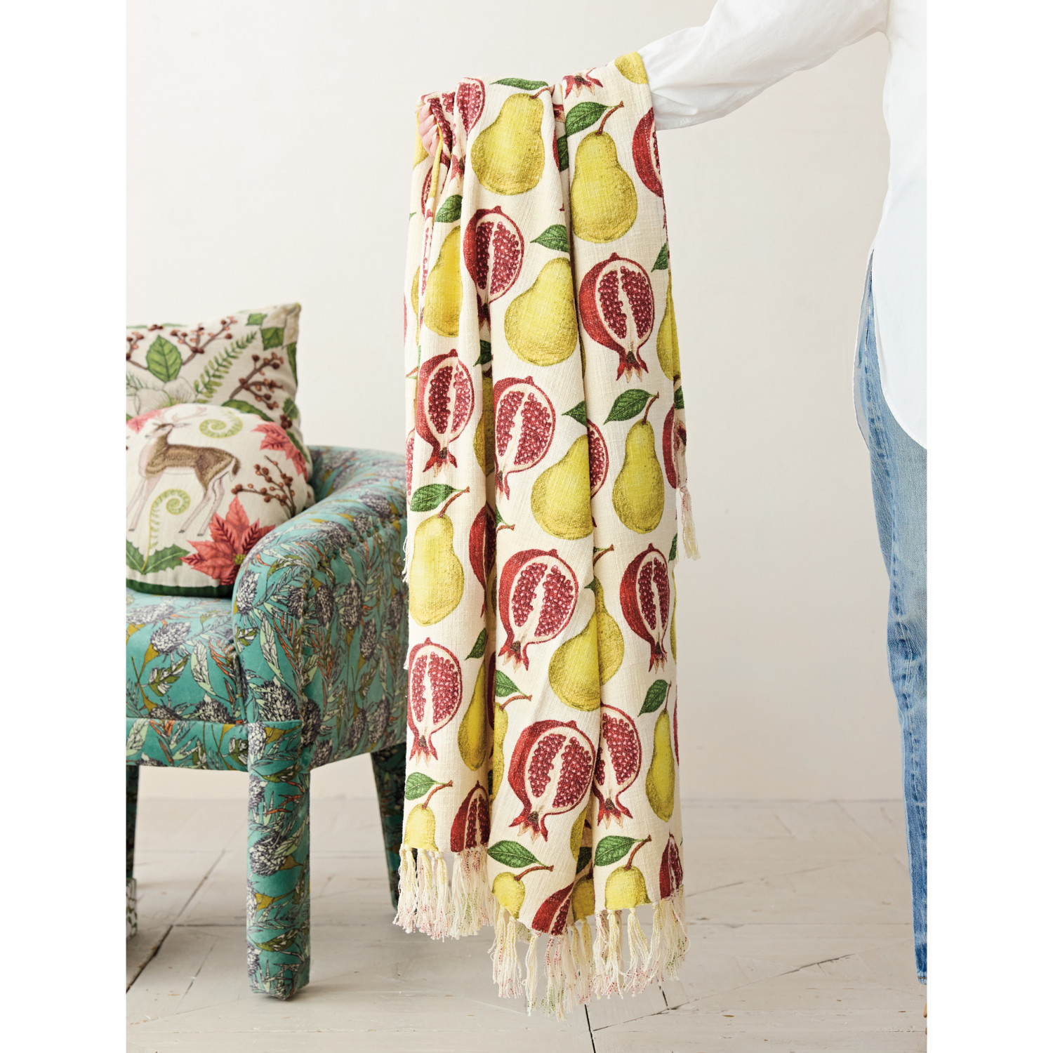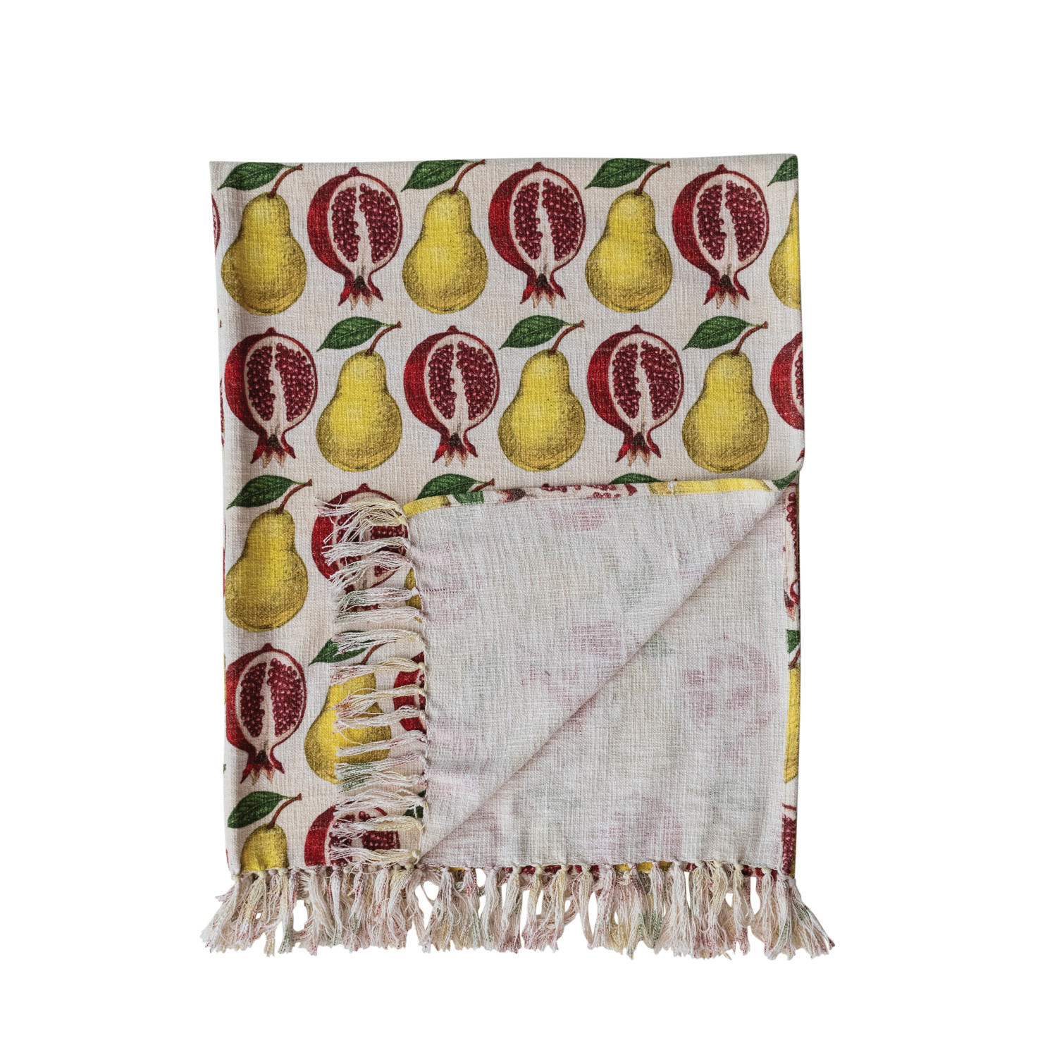 Cotton Printed Throw with Fruit Pattern & Fringe ©