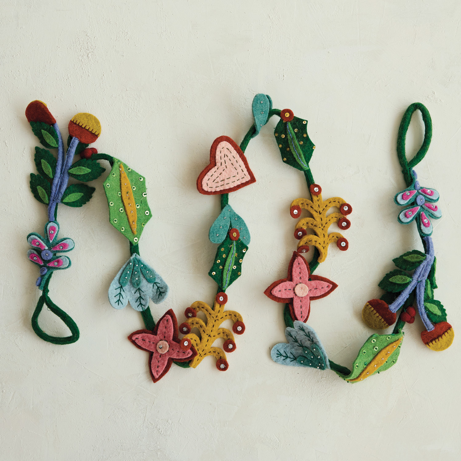 Catalog Name: 72"L x 4"H Handmade Wool Felt Flowers & Hearts Garland, Multi Color ©