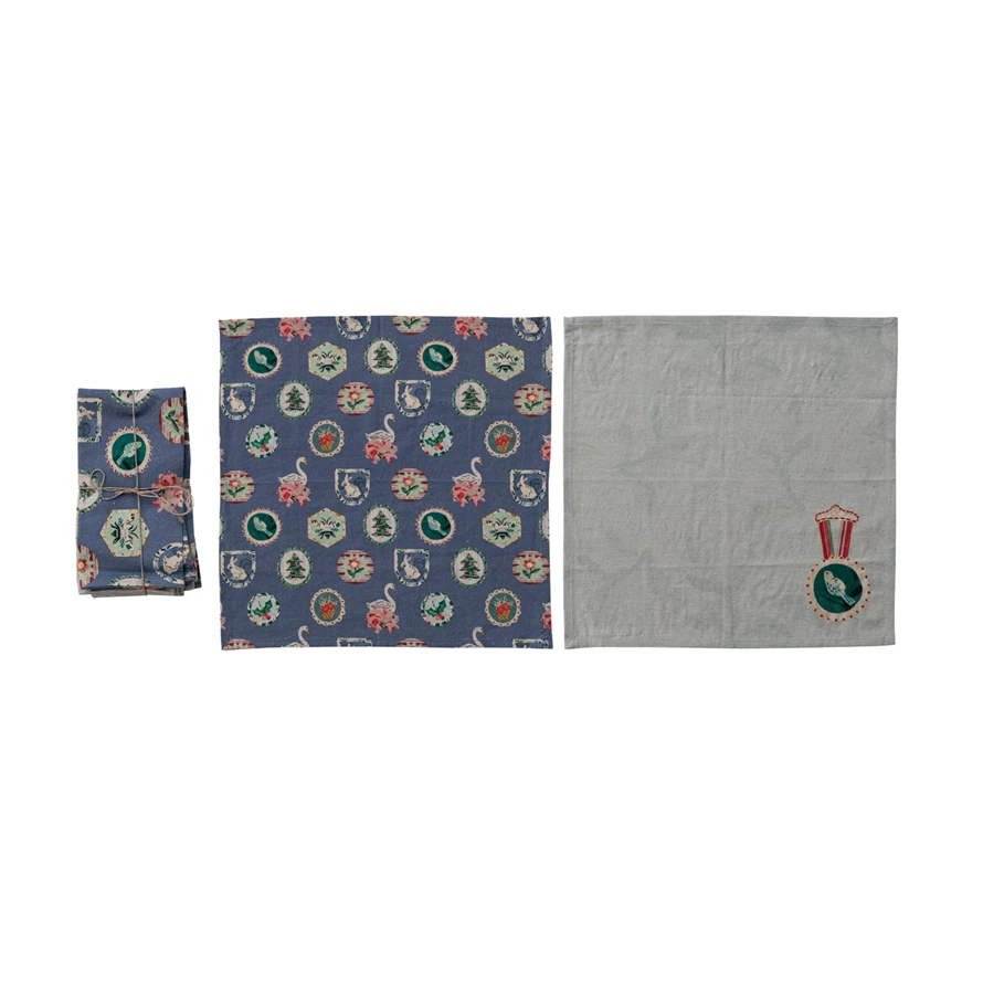 Cotton & Linen Printed Napkins with Pattern/Medal, Set of 4 Tied with Jute ©