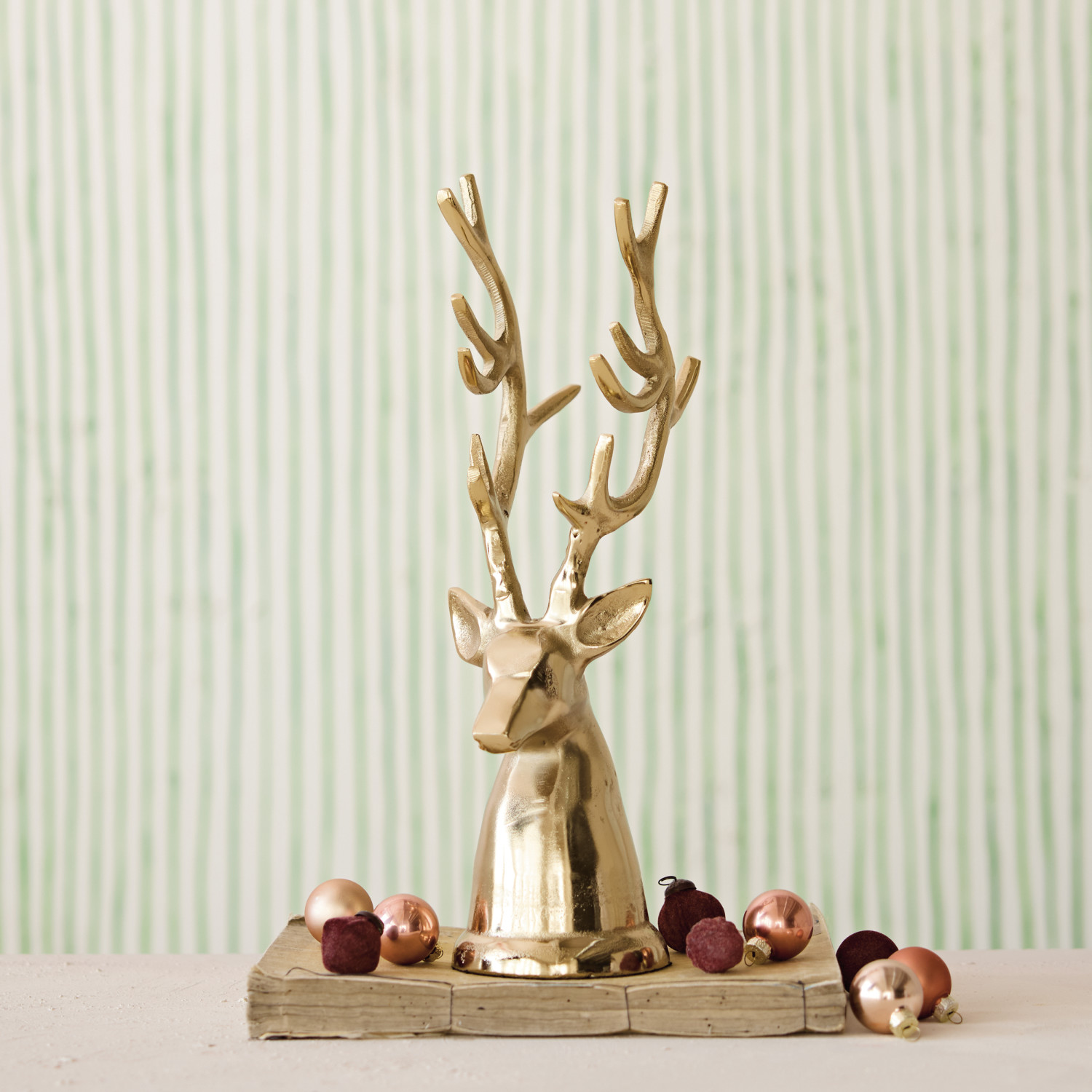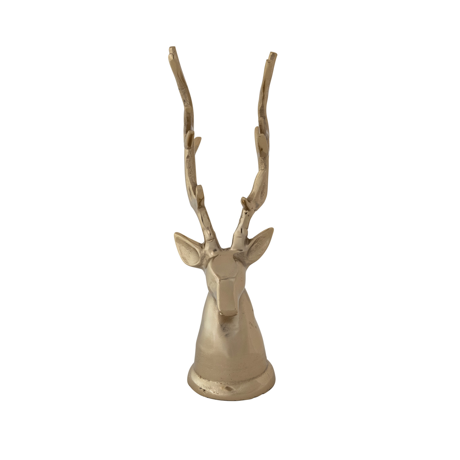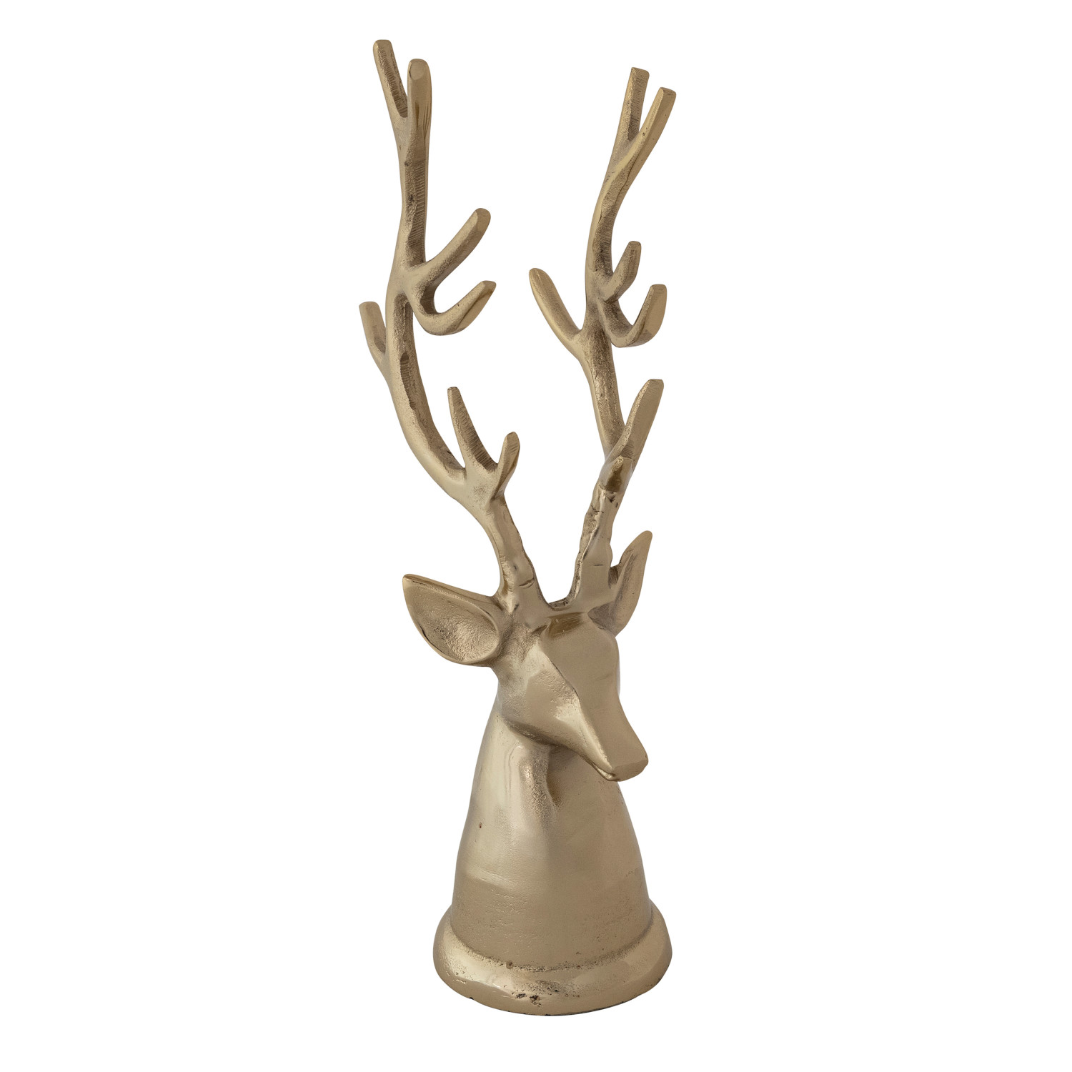 Catalog Name: 5-1/4"L x 4-1/4"W x 15-1/2"H Cast Aluminum Reindeer Head, Gold Finish