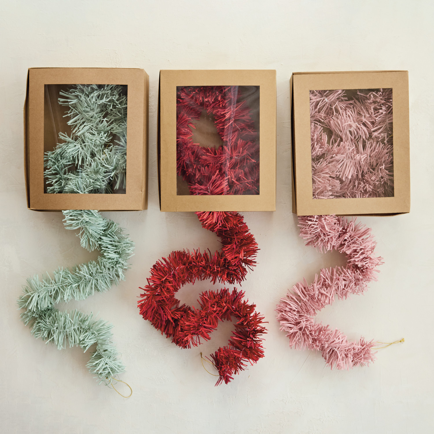 Catalog Name: 72"L x 3"H Handmade Recycled Paper Tinsel Garland in Kraft Box, Mint Color