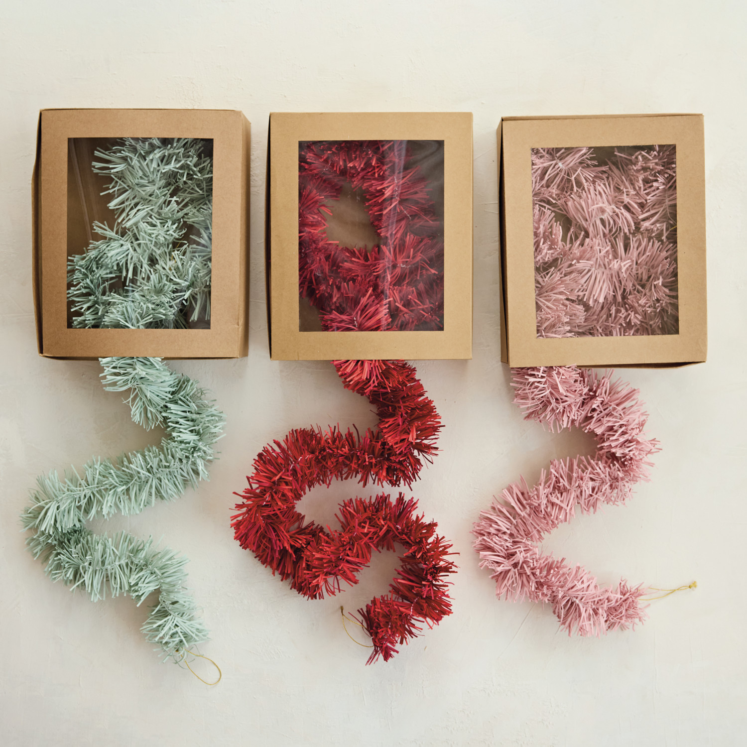 Catalog Name: 72"L x 3"H Handmade Recycled Paper Tinsel Garland in Kraft Box, Red