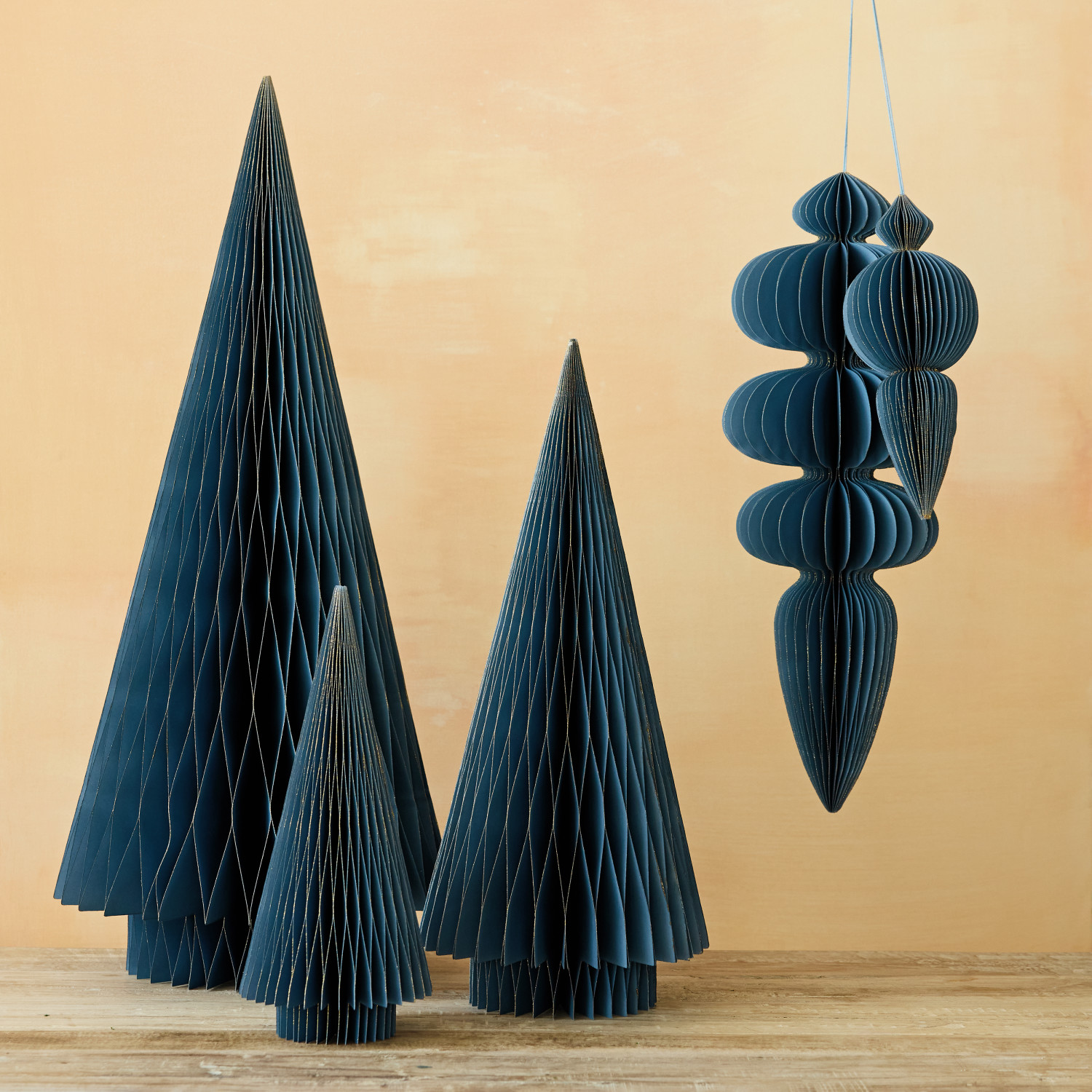 Handmade Recycled Paper Folding Honeycomb Tree with Gold Glitter Edges, Blue