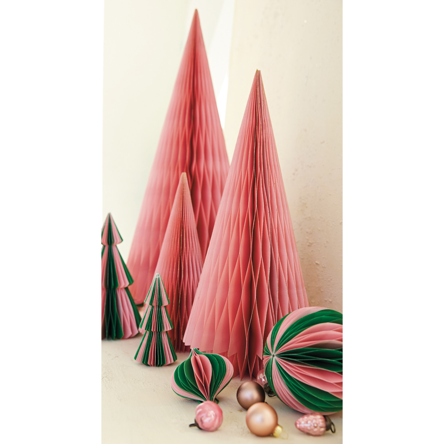 Catalog Name: 8" Round x 18"H Handmade Recycled Paper Folding Honeycomb Tree w/ Gold Glitter Edges, Pink