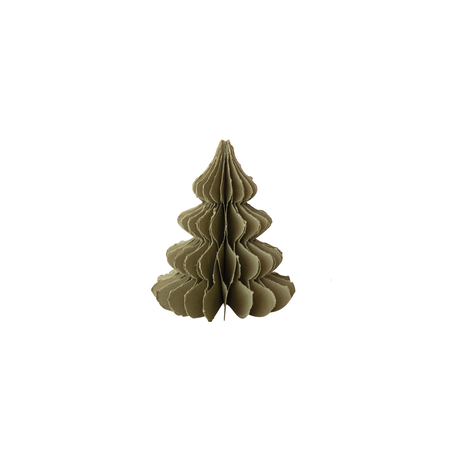 Catalog Name: 7" Round x 8"H Handmade Recycled Paper Folding Honeycomb Tree w/ Torn Edges, Olive Color