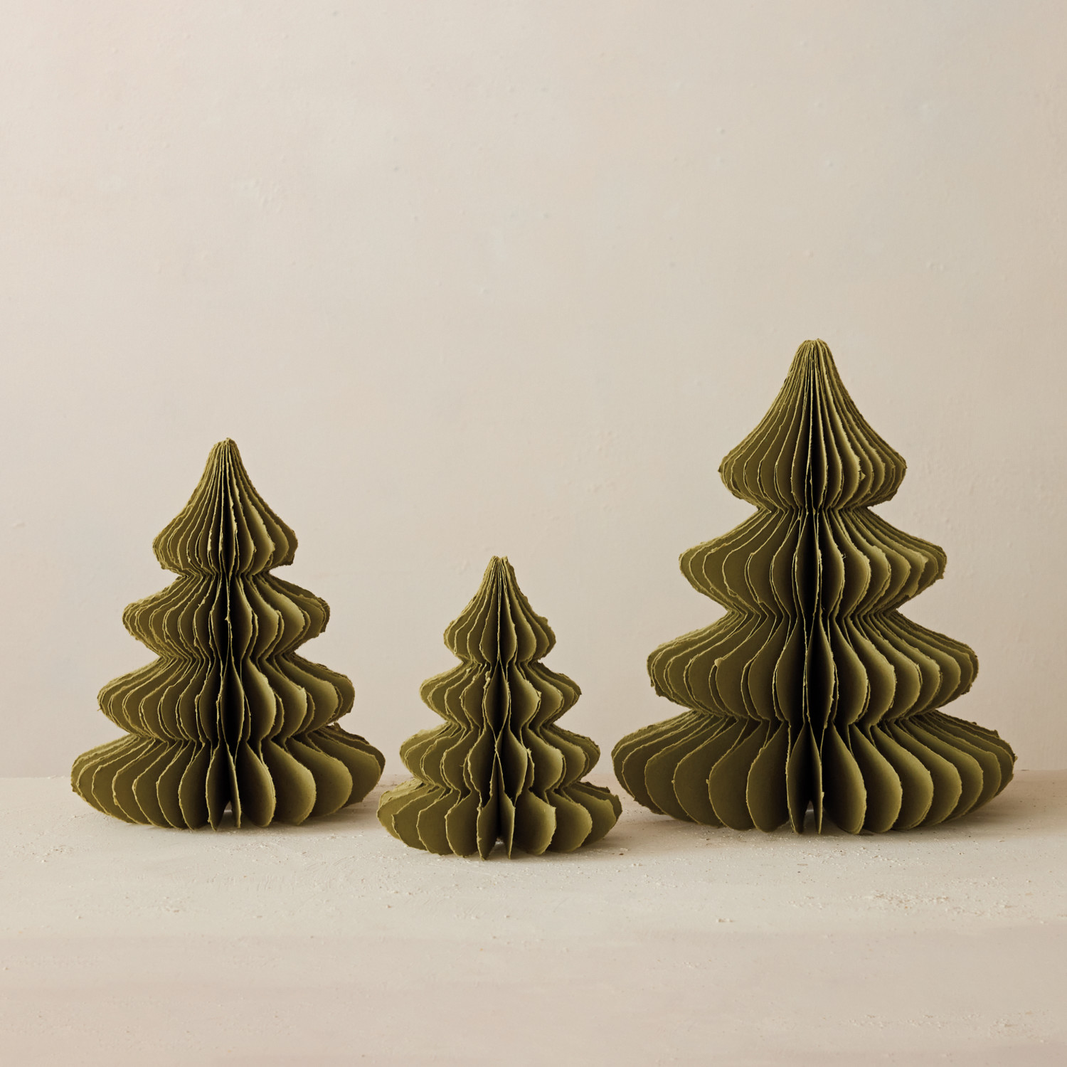 Handmade Recycled Paper Folding Honeycomb Tree with Torn Edges, Olive Color