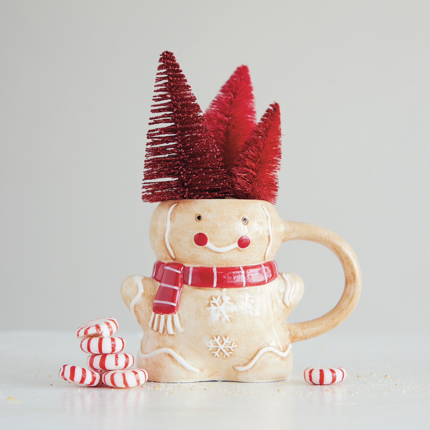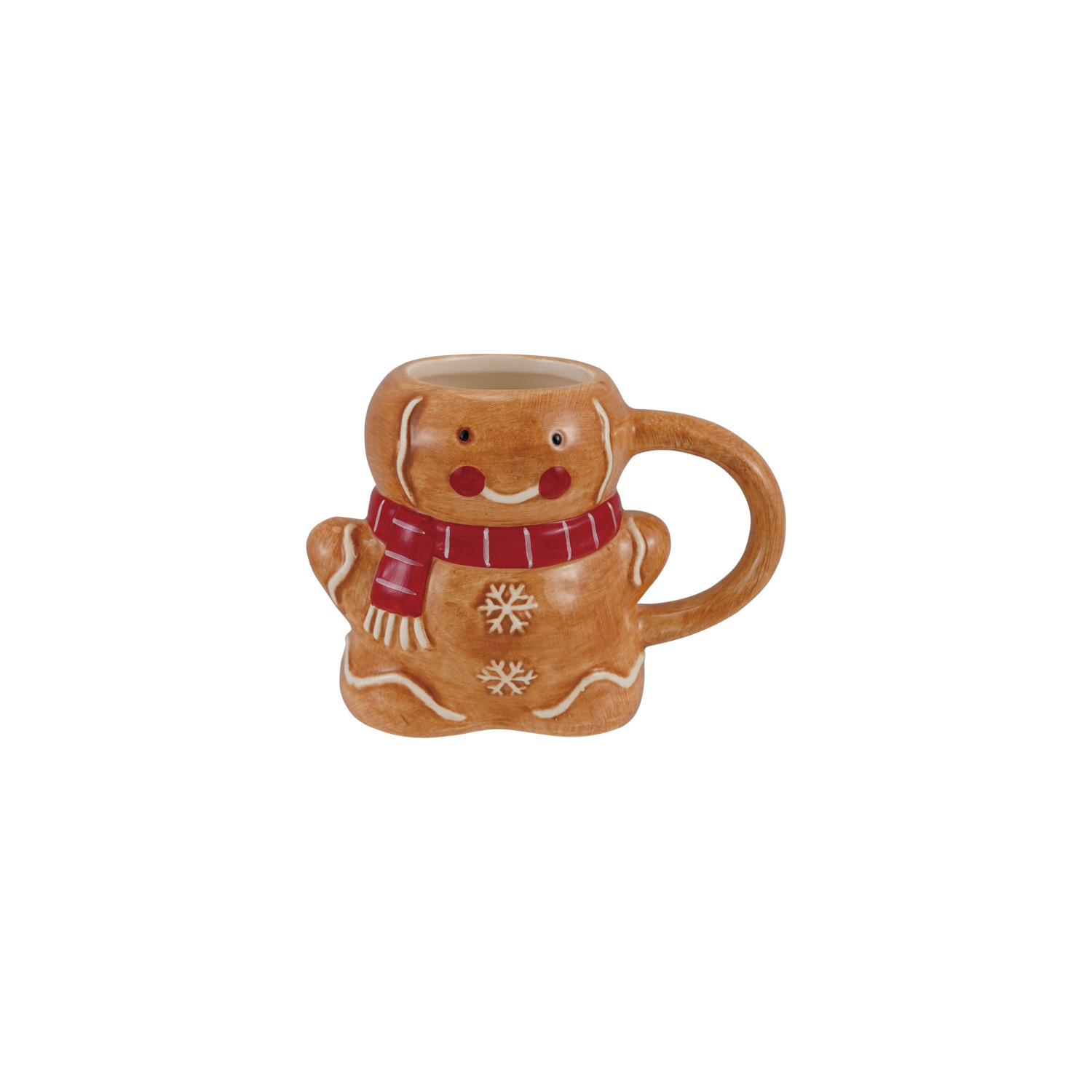10 oz. Hand-Painted Ceramic Gingerbread Shaped Mug, Brown, Red & White (Each One Will Vary)