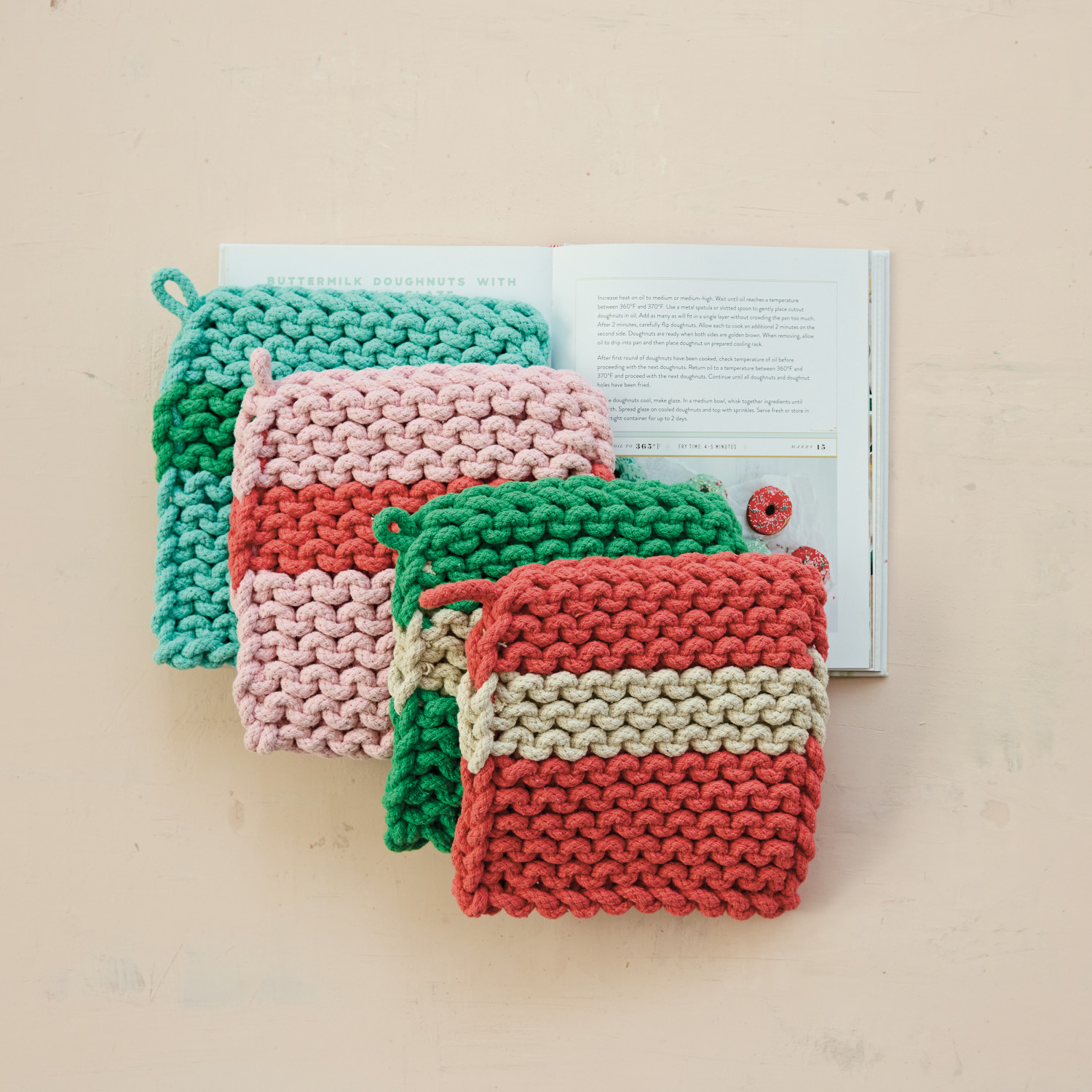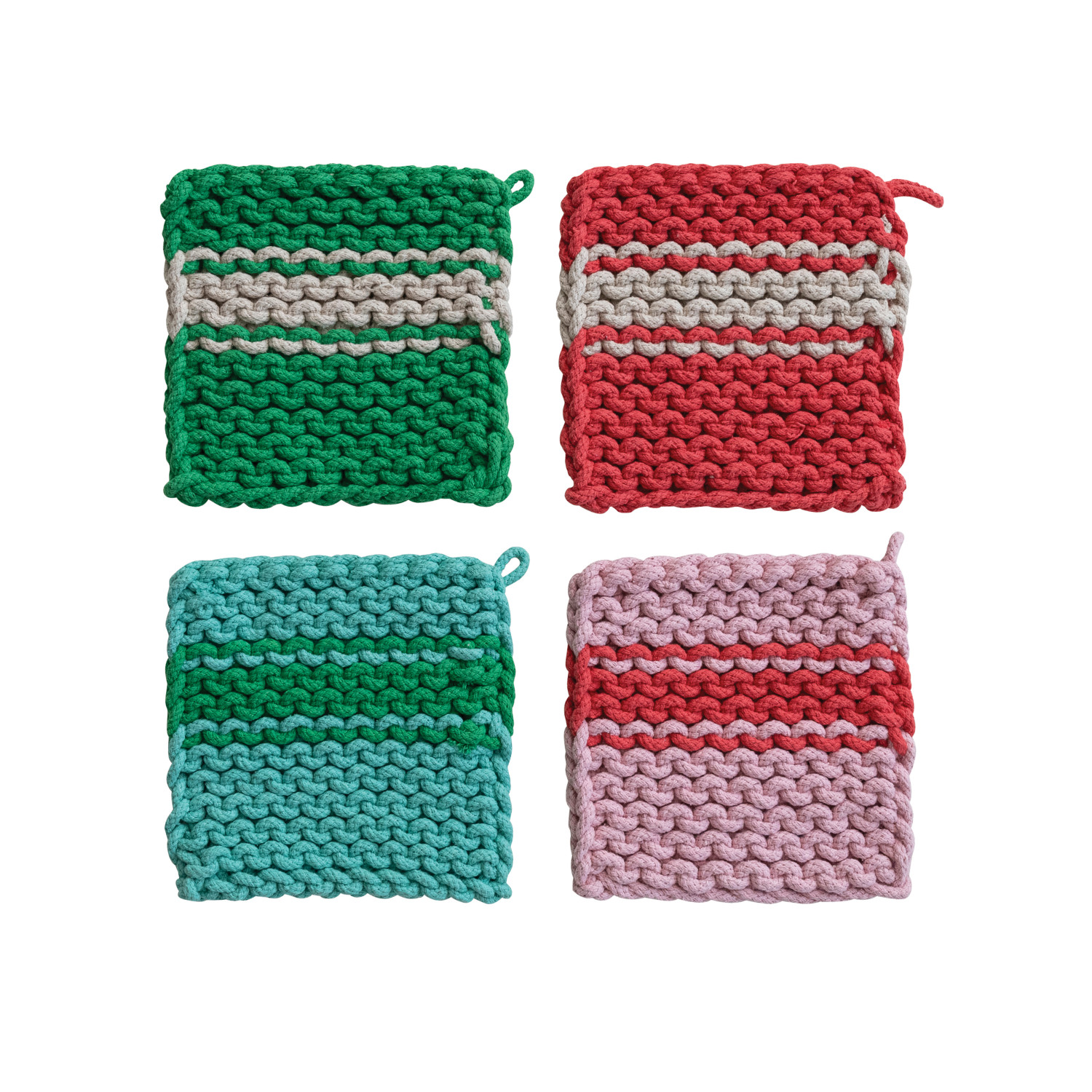 Cotton Crocheted Pot Holder with Stripe, 4 Colors
