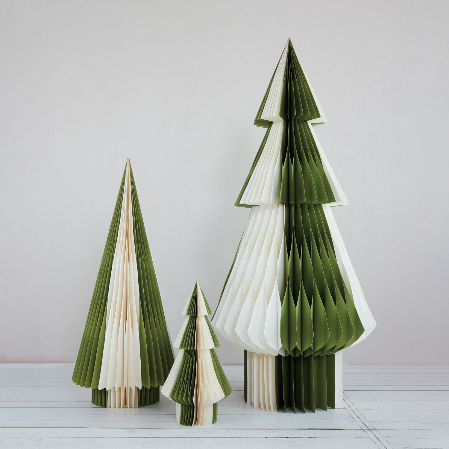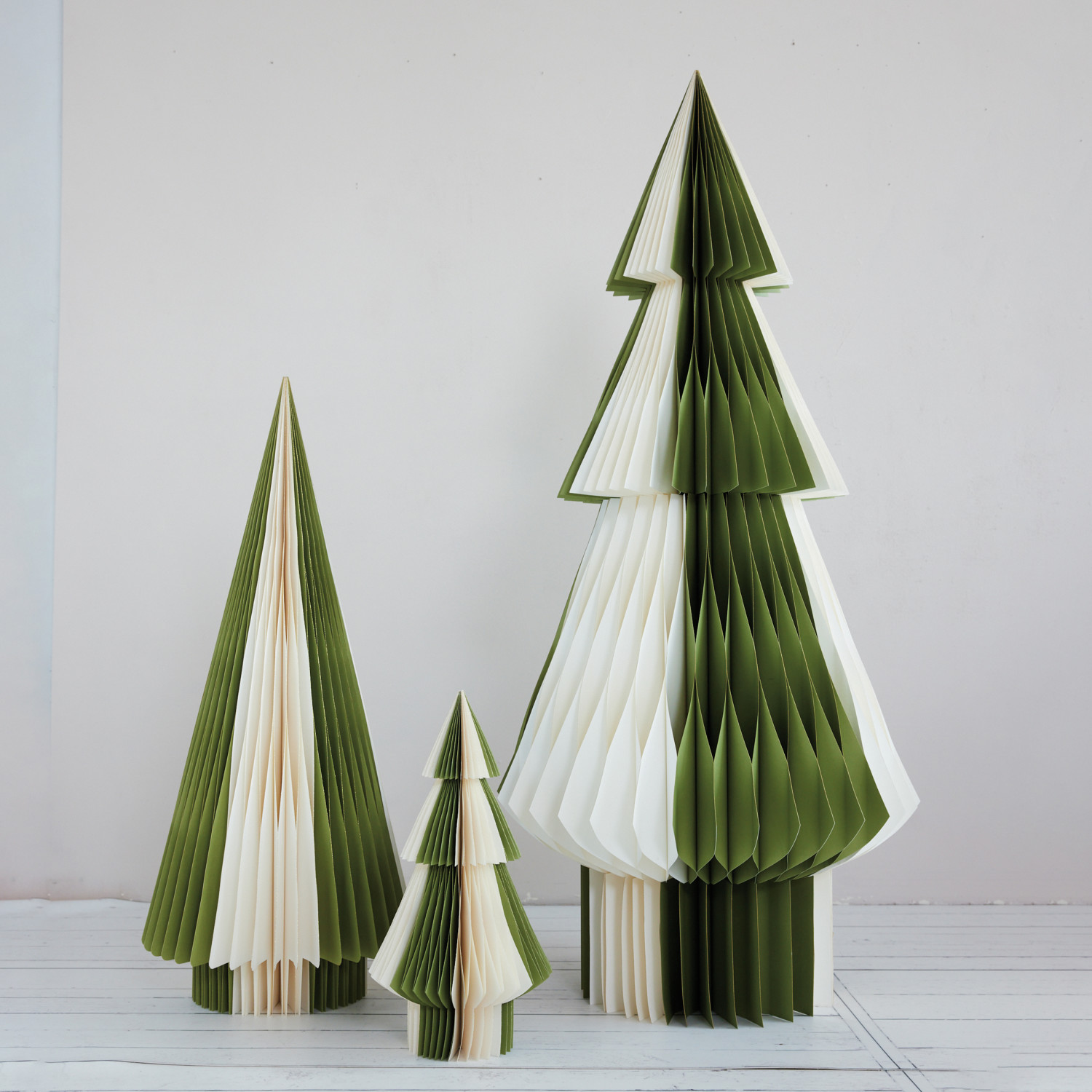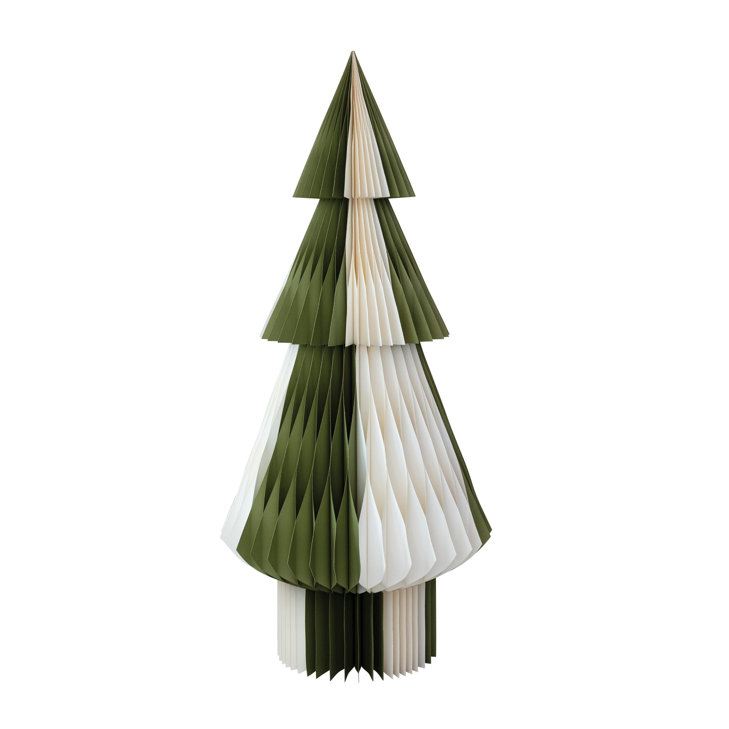 Catalog Name: 25" Round x 54"H Handmade Recycled Paper Folding Honeycomb Tree w/ Gold Glitter Edges, Green & Ivory Color, KD