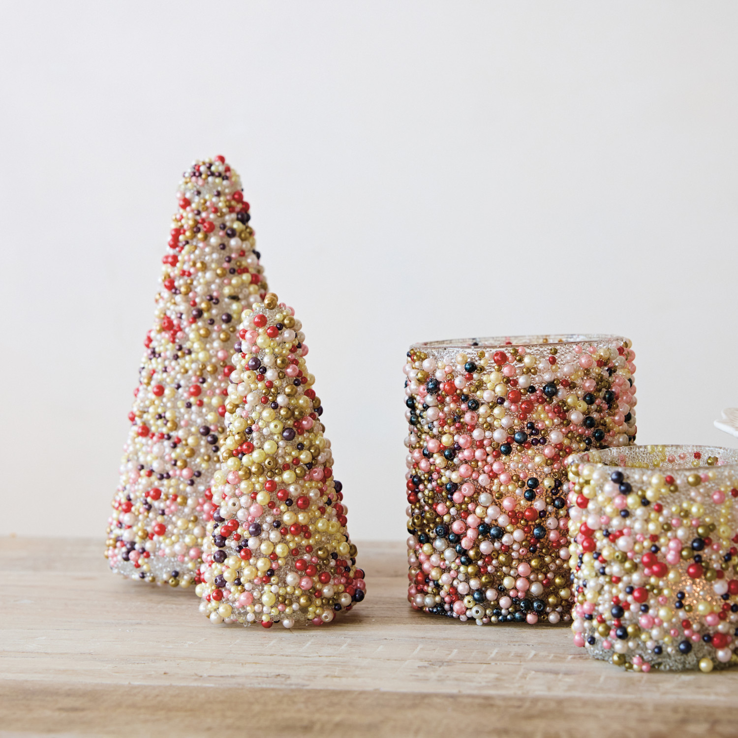 Catalog Name: 4-1/4" Round x 8"H Beaded Glass Tree, Multi Color (Each One Will Vary)