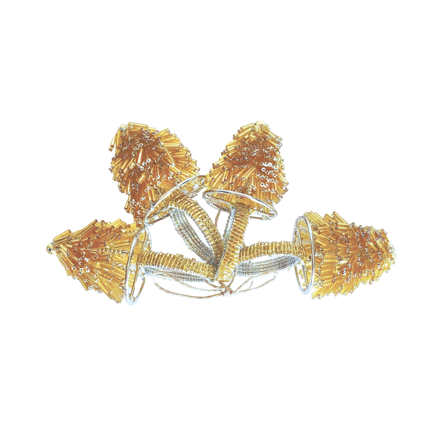 Handmade Metal & Glass Beaded Tree Napkin Rings, Gold Finish, Set of 4 Tied with Jute