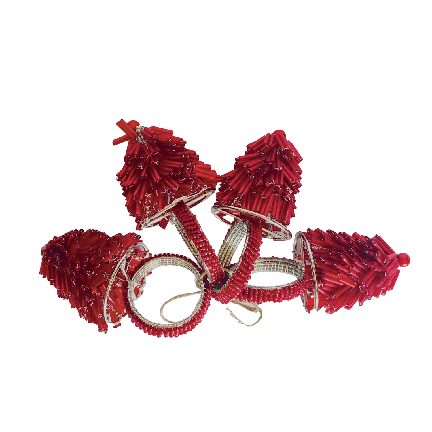 Handmade Metal & Glass Beaded Tree Napkin Rings, Red, Set of 4 Tied with Jute