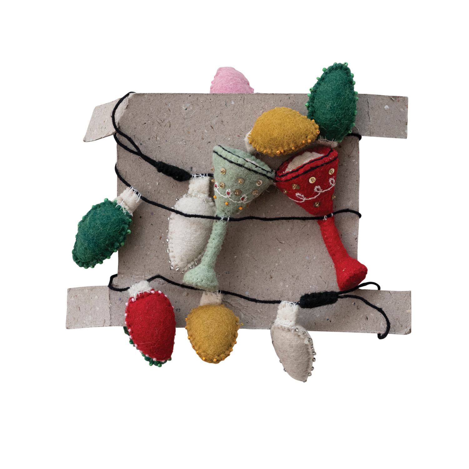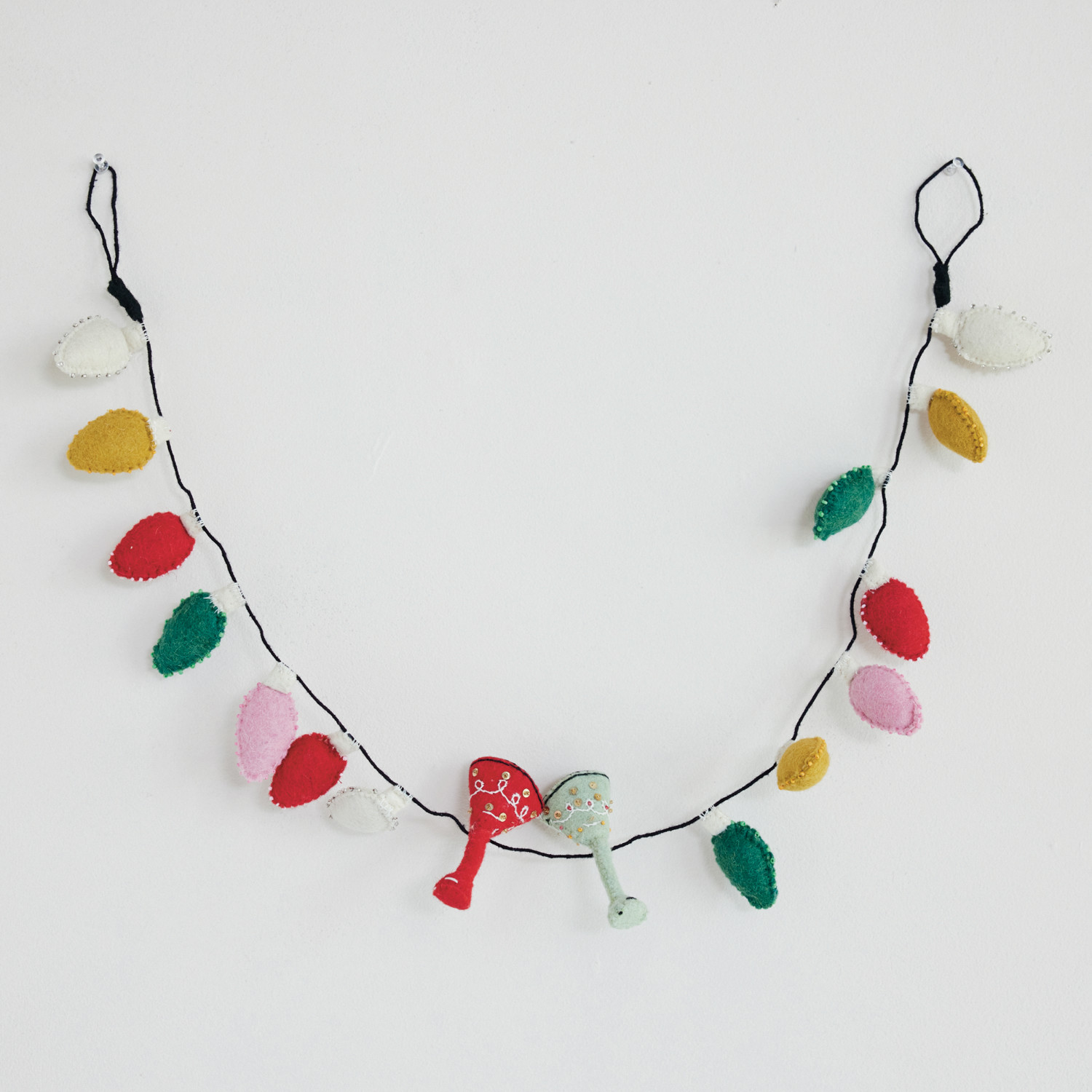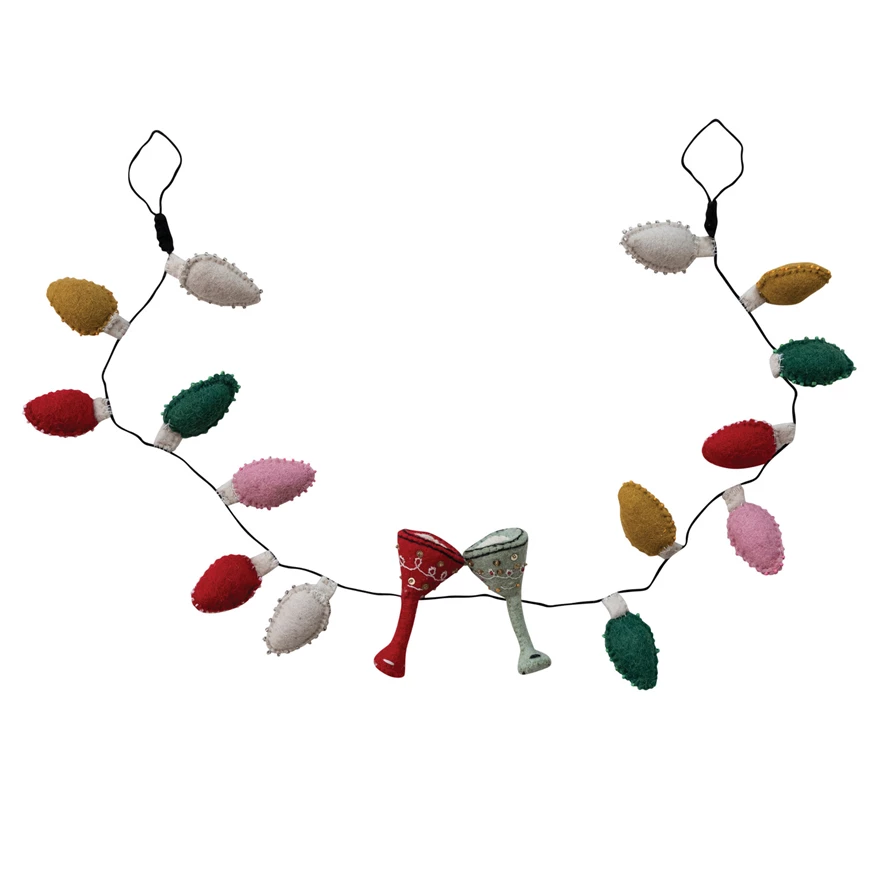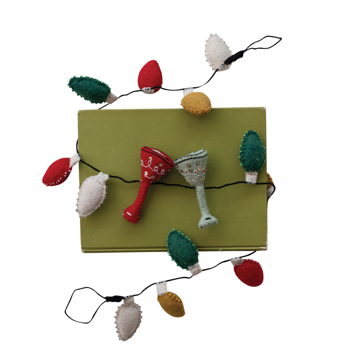 Handmade Wool Felt Lights & Cocktails Garland with Embroidery & Beads