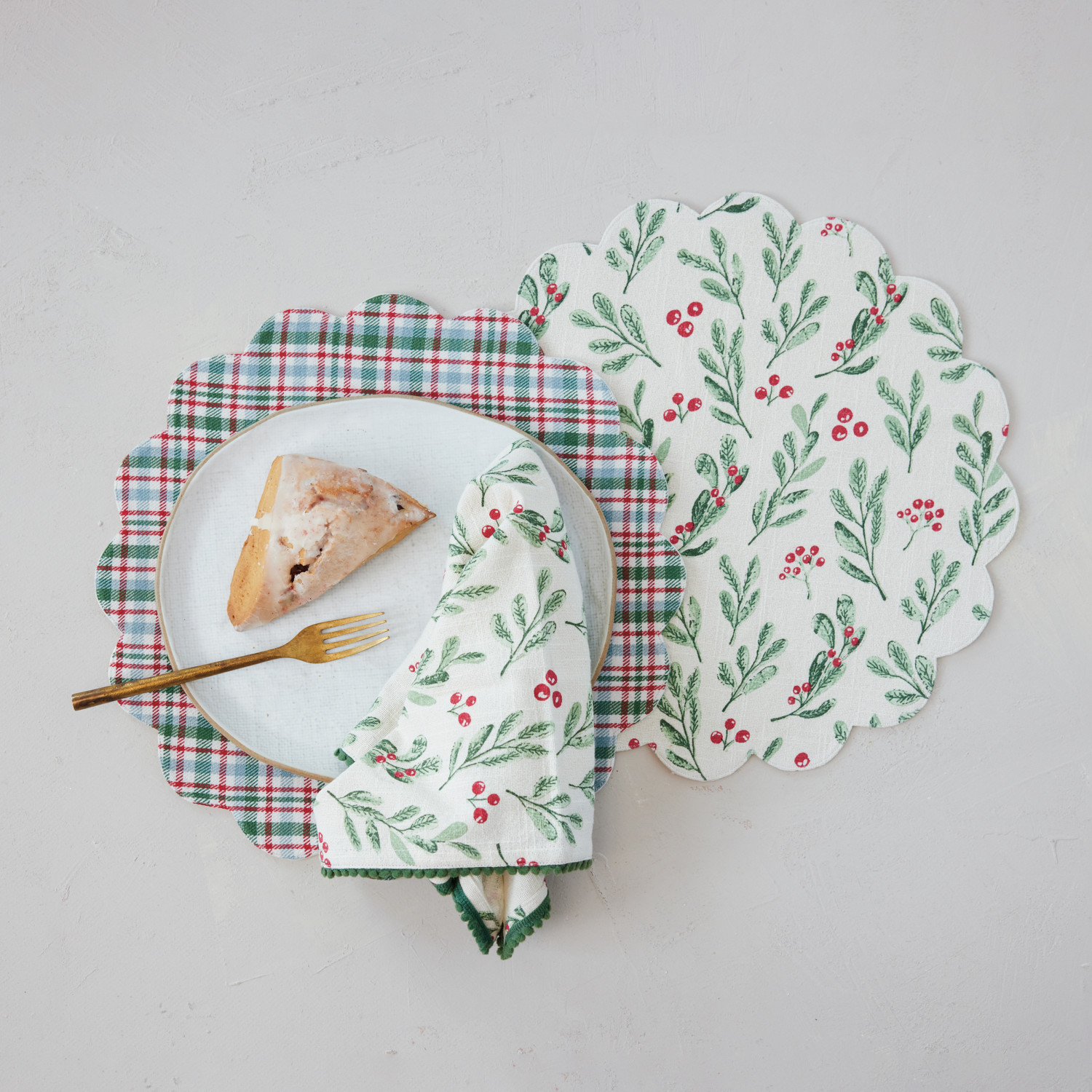 Woven Cotton Scalloped Placemat with Plaid Pattern
