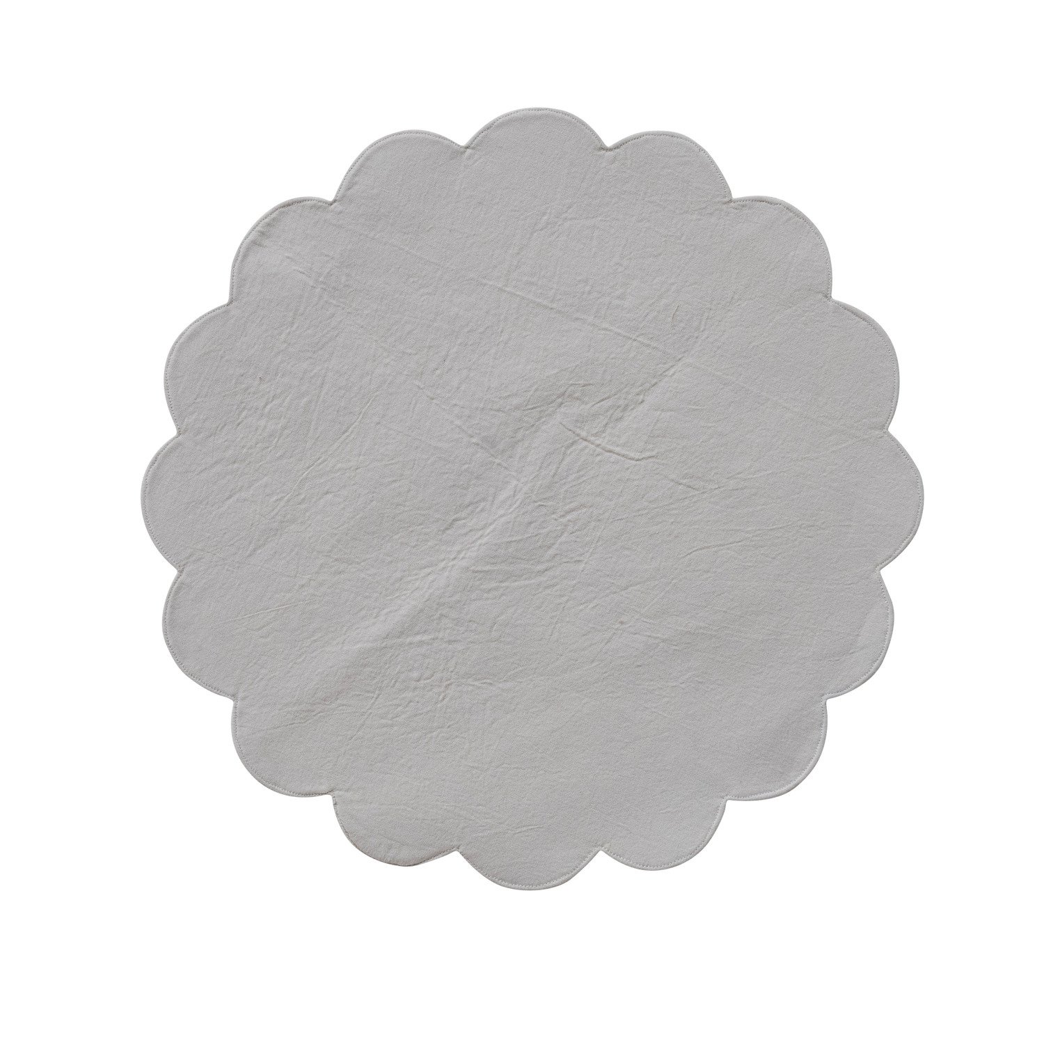Catalog Name: 15" Round Woven Cotton Printed Scalloped Placemat w/ Mistletoe Pattern, White, Green & Red