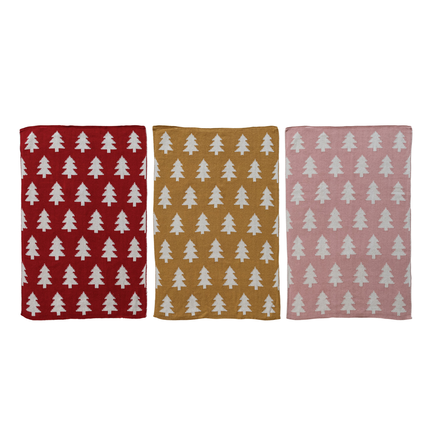 Cotton Knit Tea Towel with Tree Pattern, 3 Colors