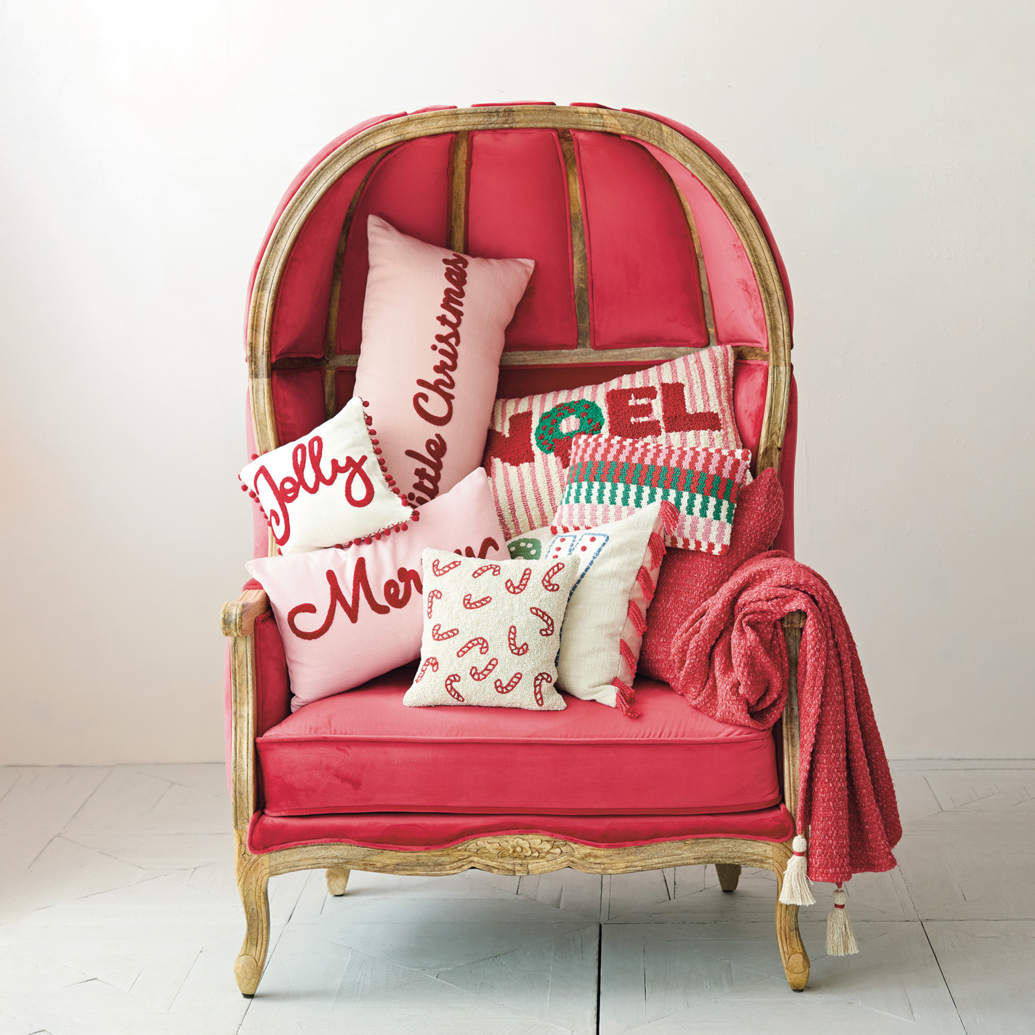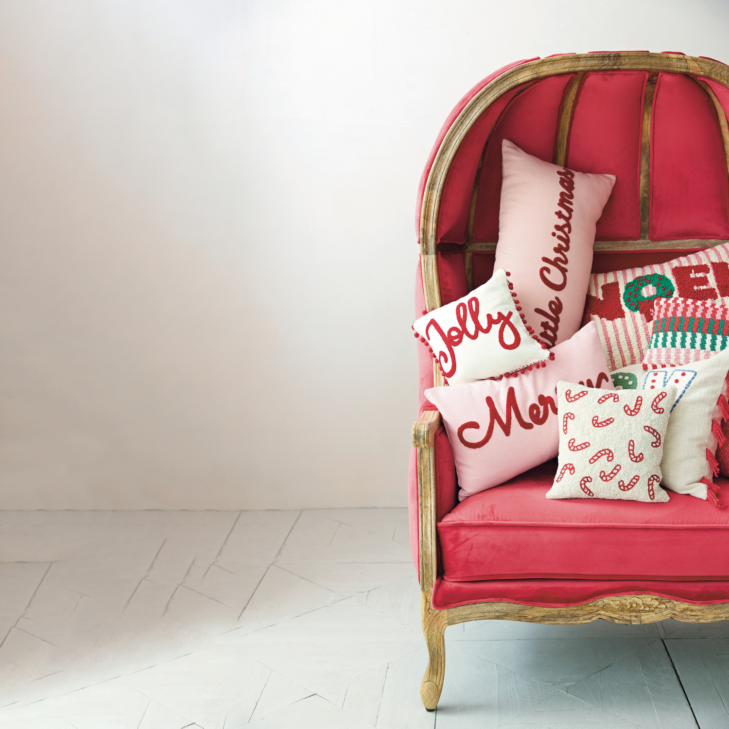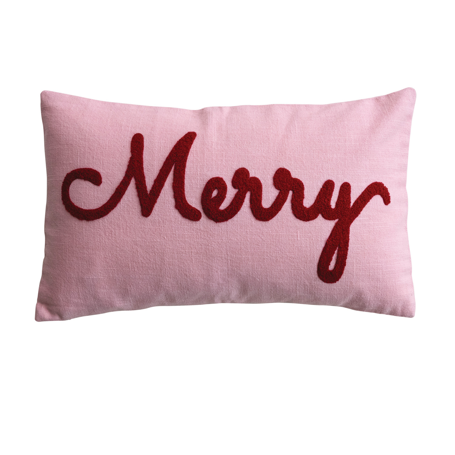 Catalog Name: 20"L x 12"H Square Cotton Slub Lumbar Pillow w/ Tufted "Merry", Pink & Red