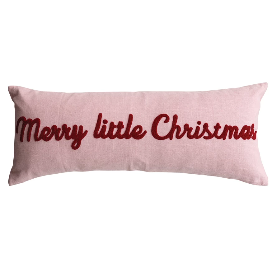 Catalog Name: 36"L x 14"H Square Cotton Slub Lumbar Pillow w/ Tufted "Merry little Christmas", Pink & Red
