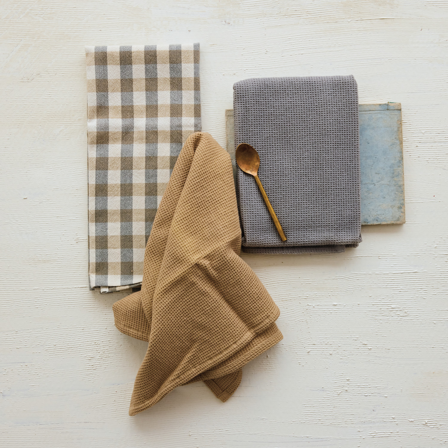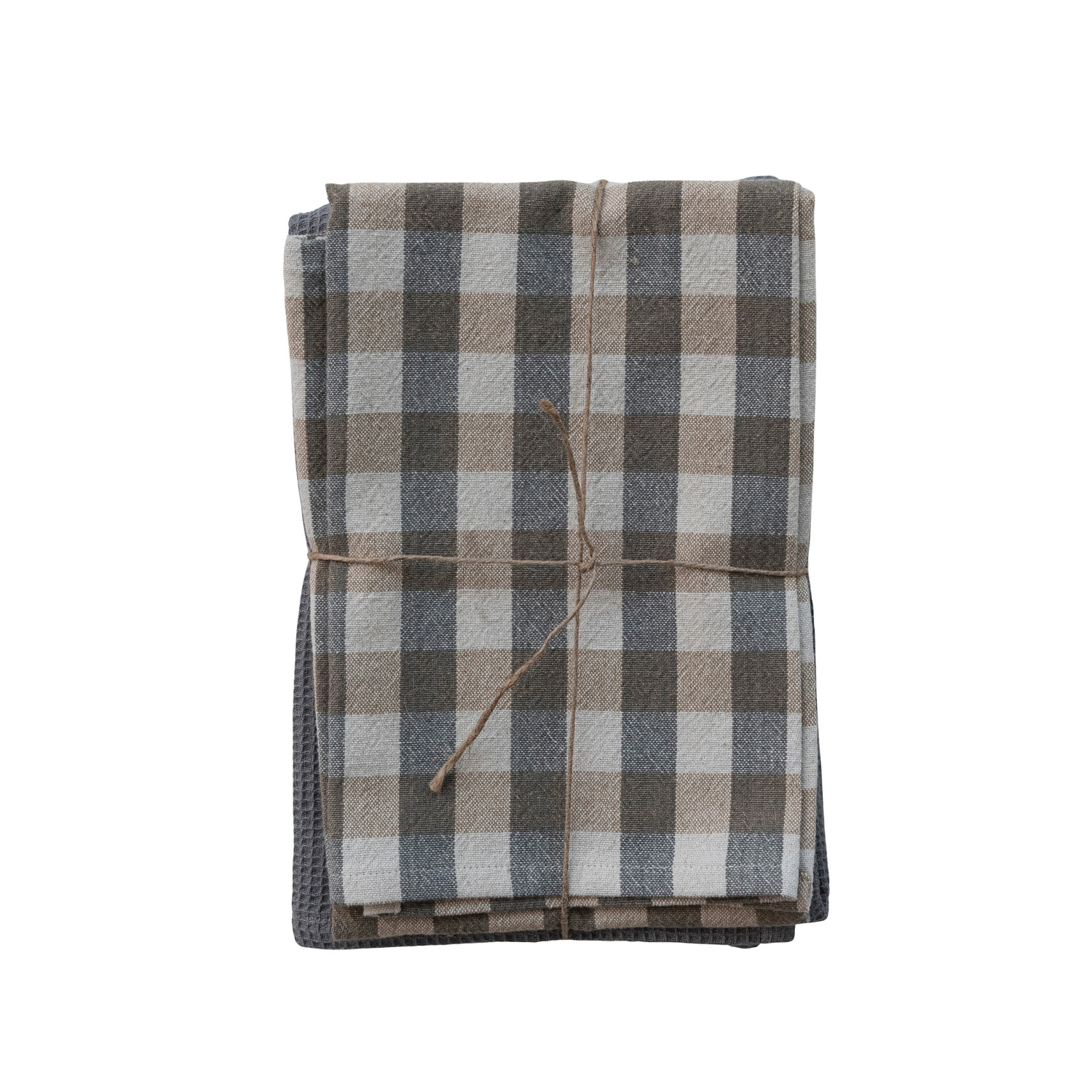 Woven Cotton Waffle Weave Tea Towels, Set of 3 Tied with Jute