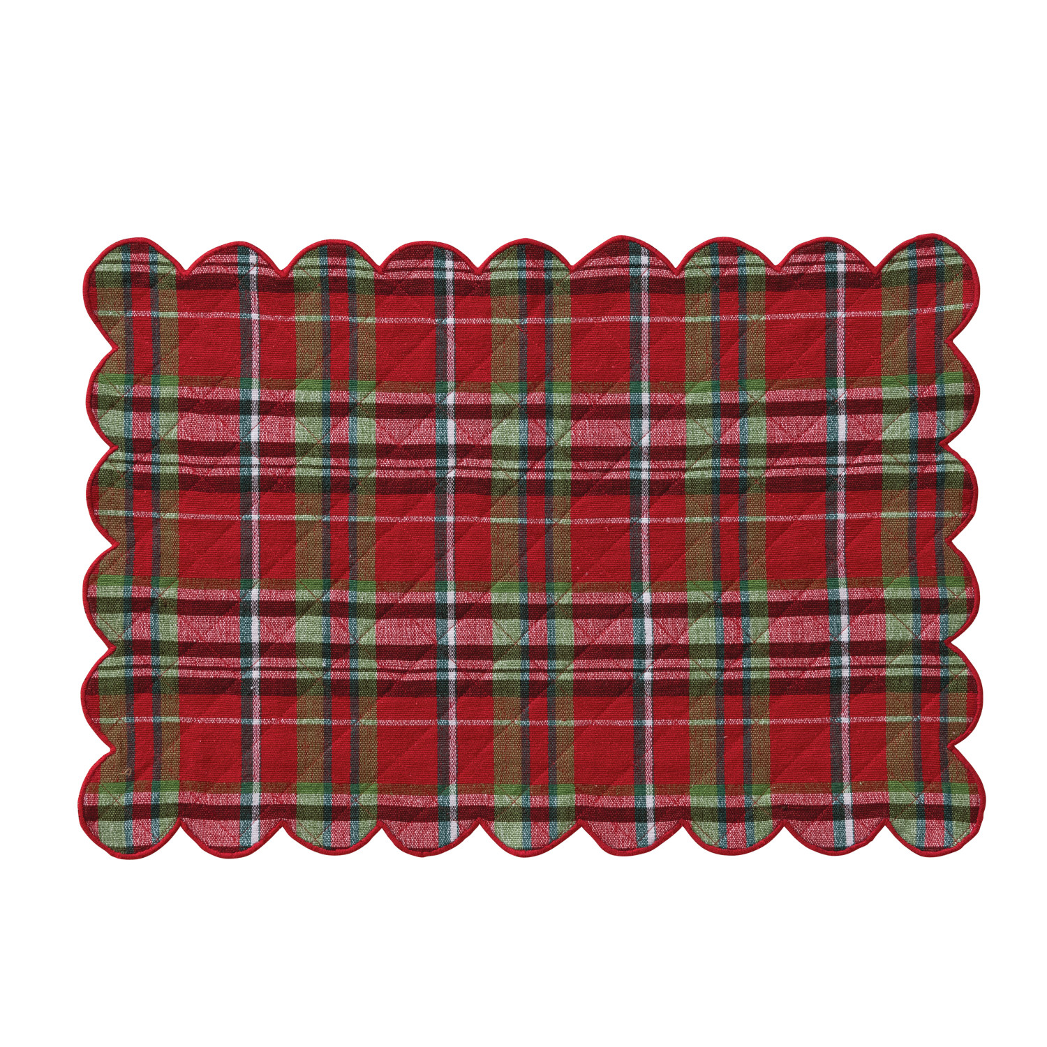 Catalog Name: 19"L x 13"W Cotton Quilted Scalloped Placement w/ Tartan Plaid Pattern & Stitched Edge, Multi Color