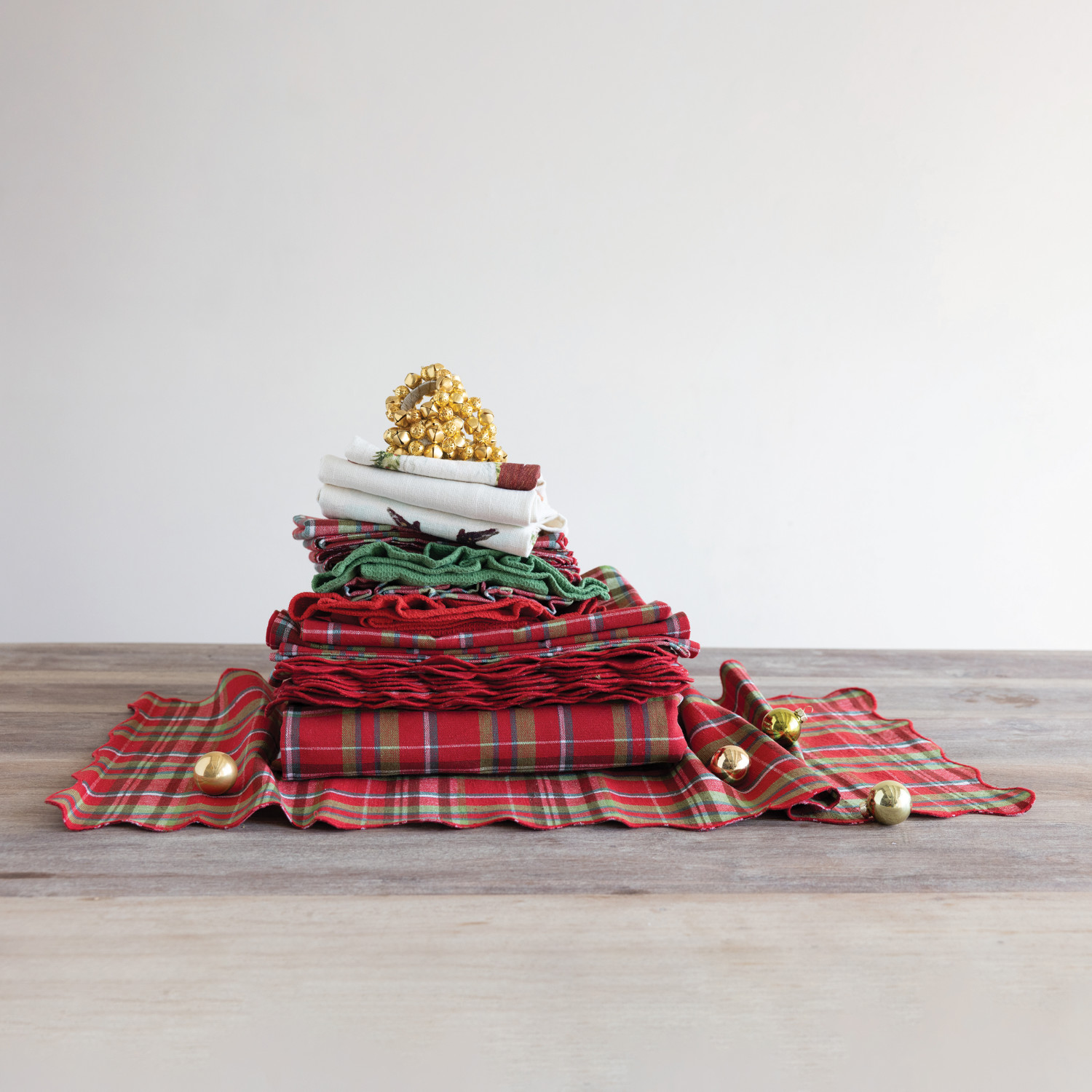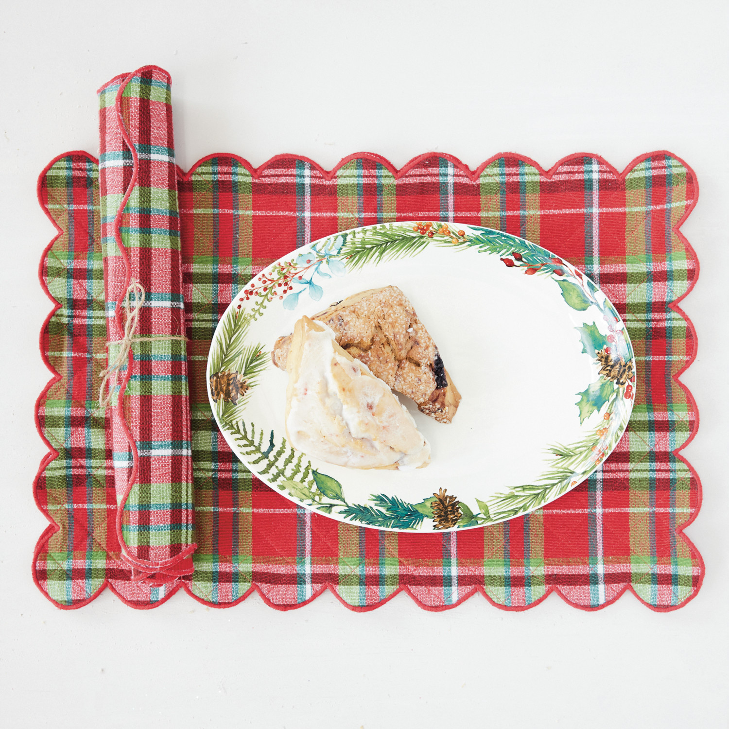 Cotton Quilted Scalloped Placement with Tartan Plaid Pattern & Stitched Edge