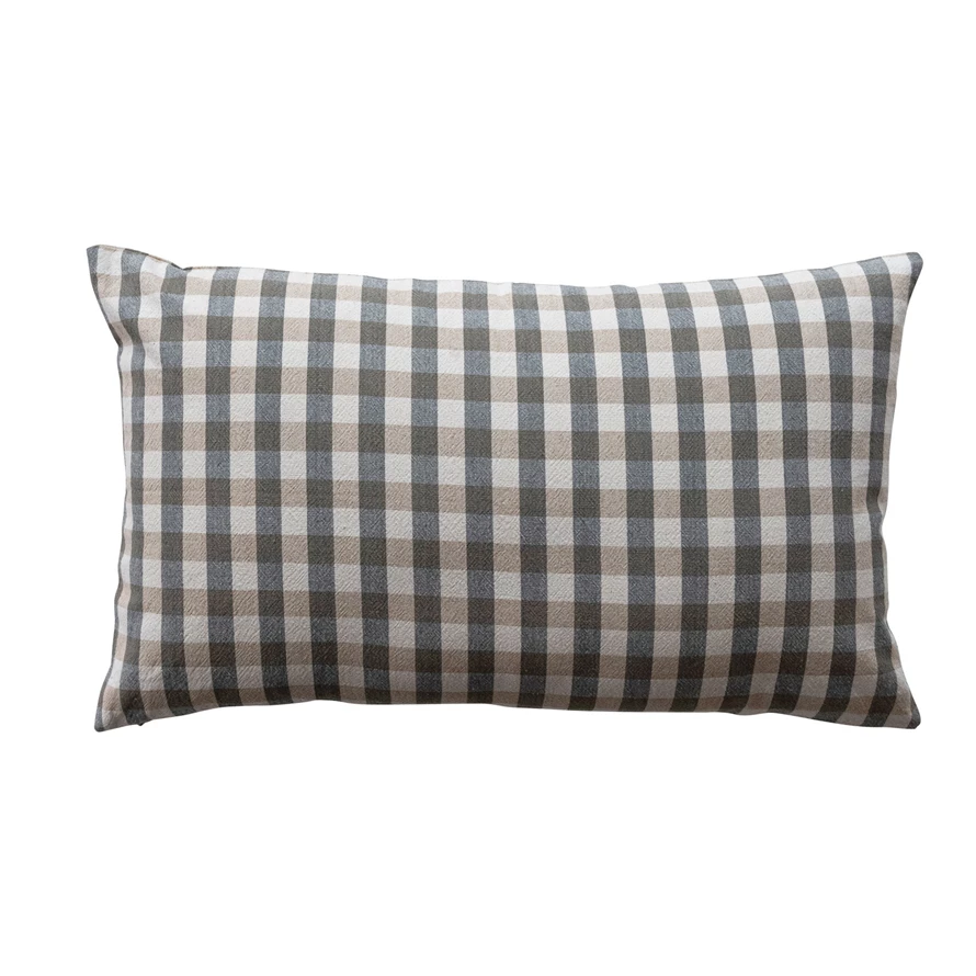 Catalog Name: 24"L x 14"H Woven Cotton Lumbar Pillow w/ Check Pattern, Grey, Beige & Cream Color
