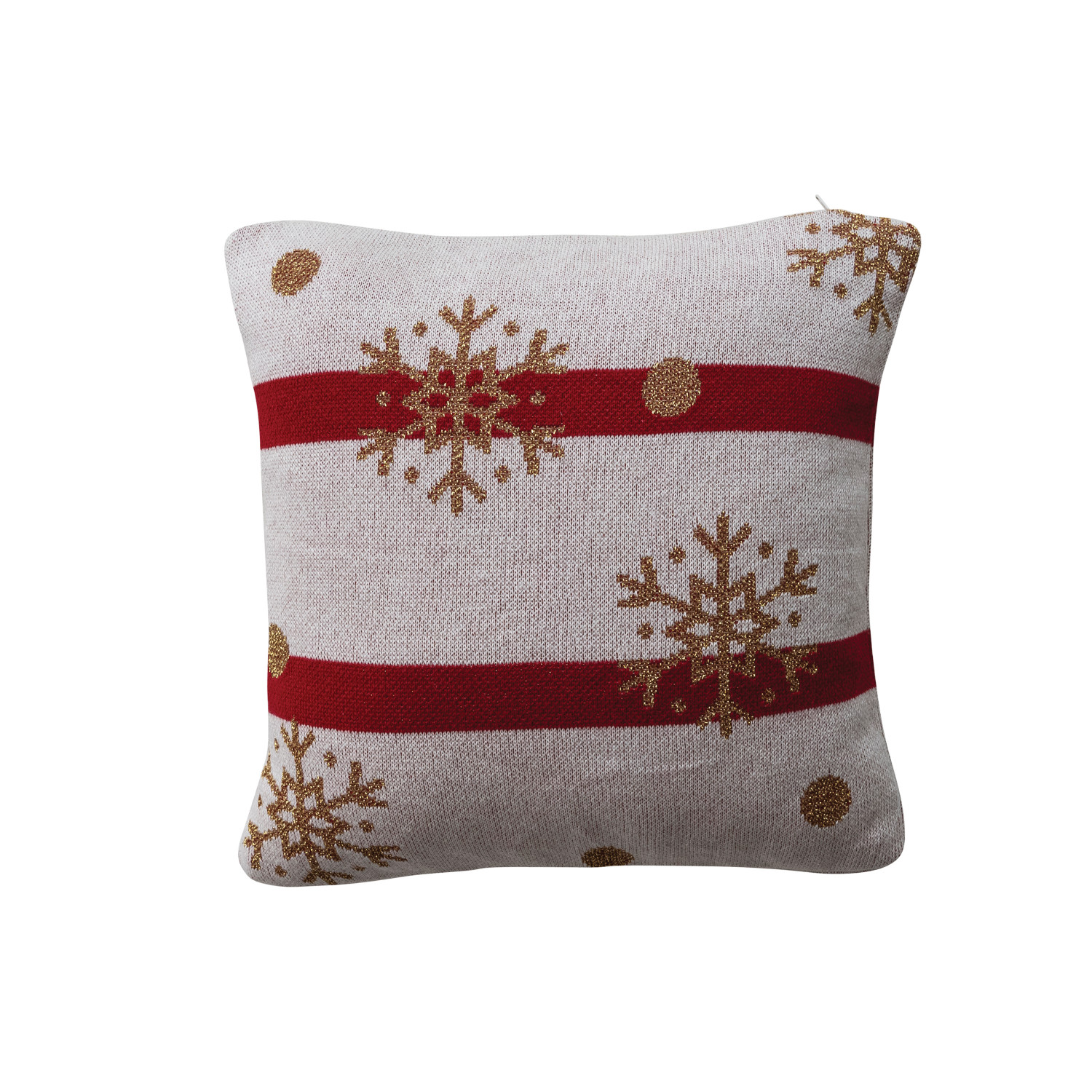 Catalog Name: 12" Square Cotton Knit Pillow w/ Stripes, Snowflakes & Dots Pattern, Natural, Red & Gold Color