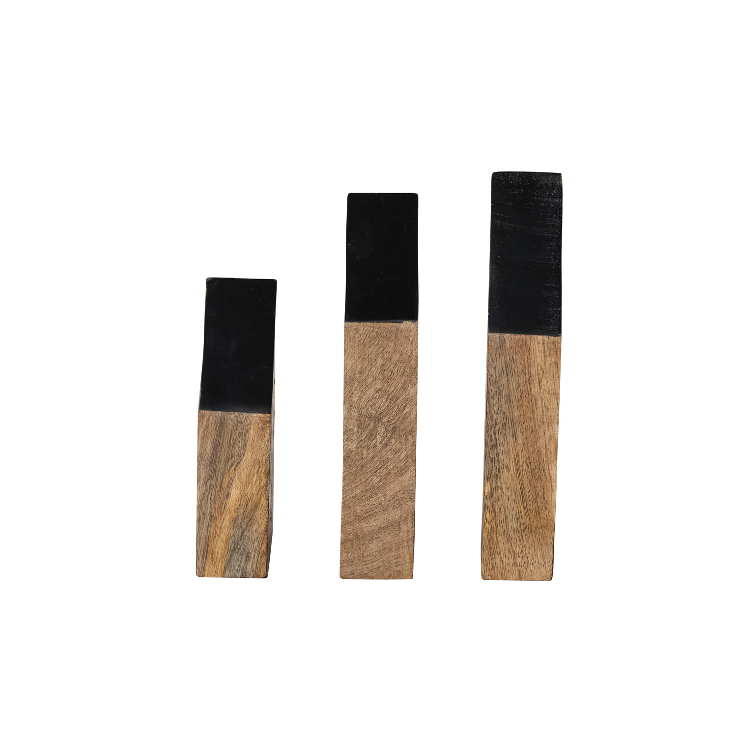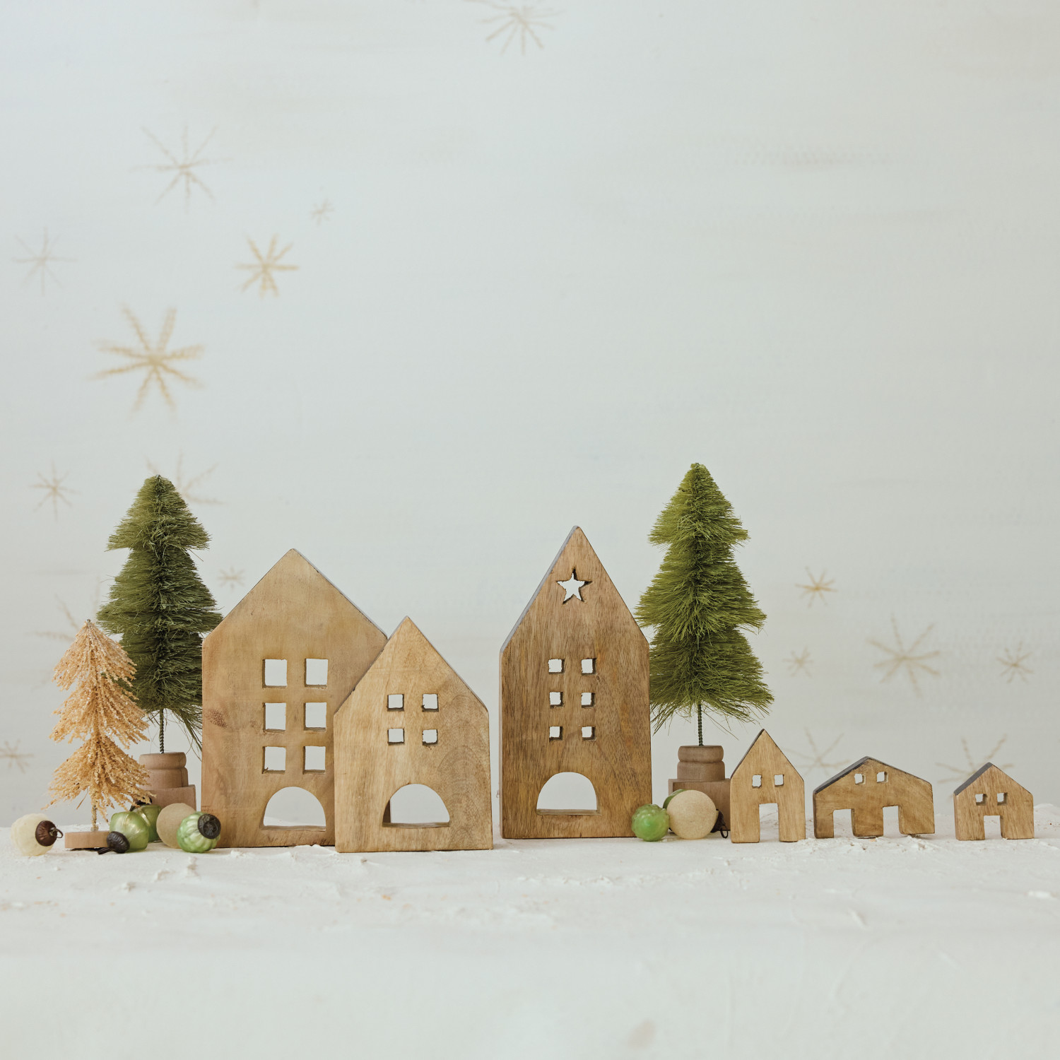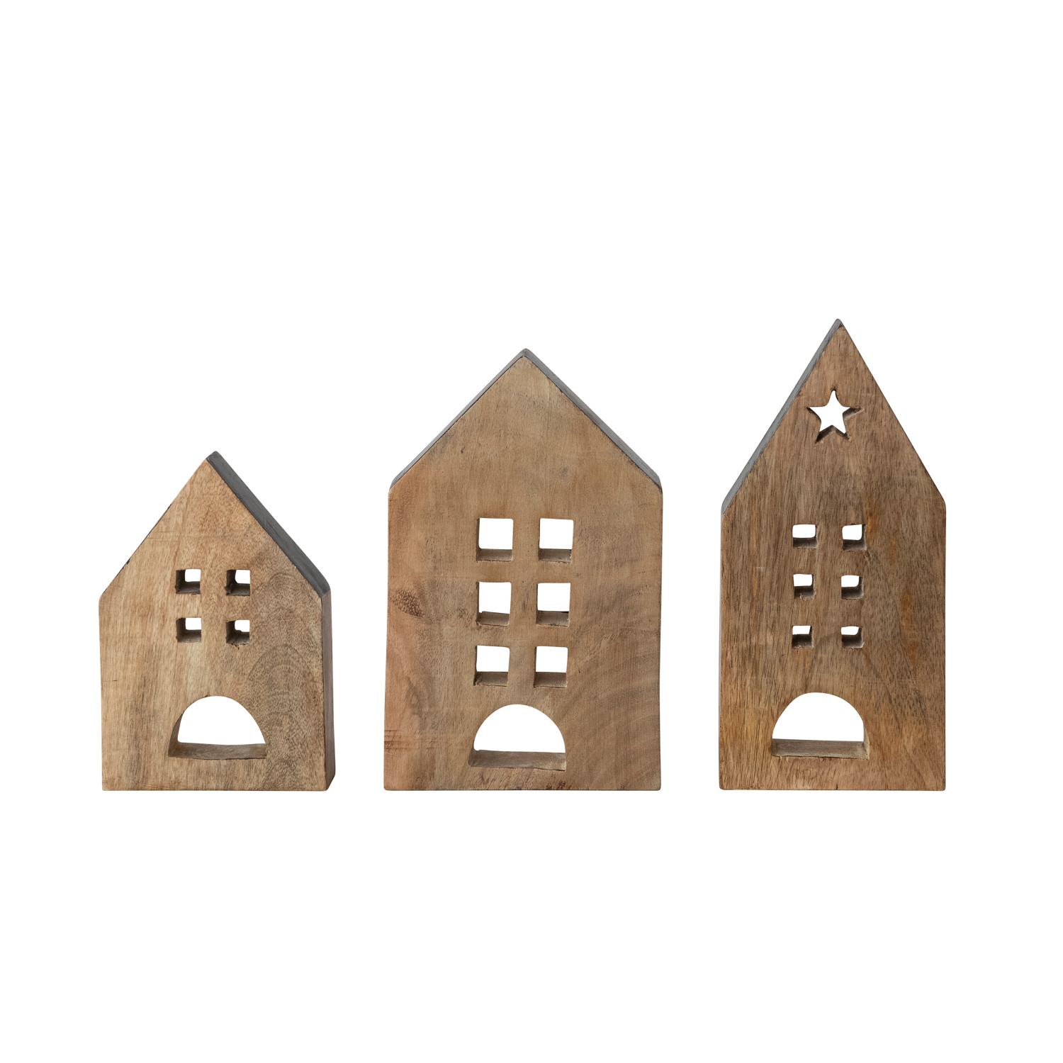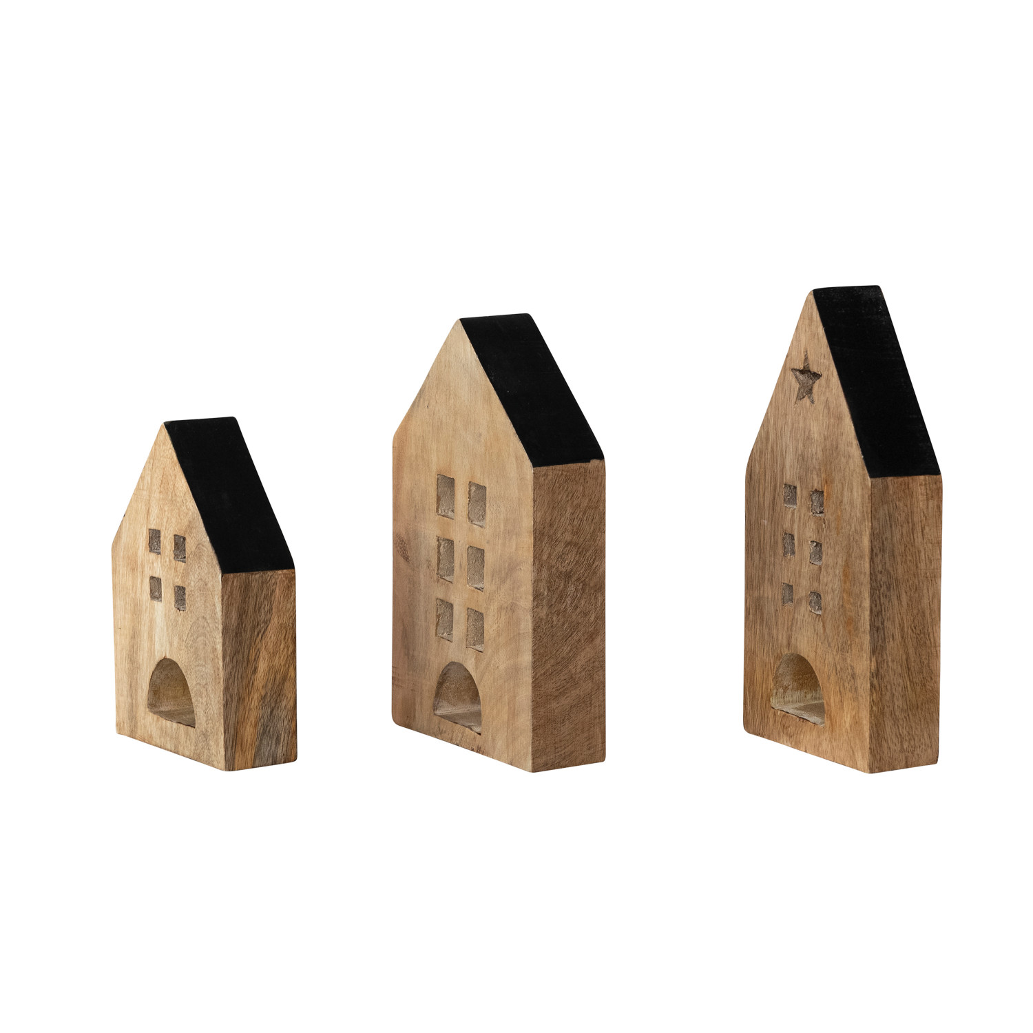 Catalog Name: 8-1/2"H, 8"H & 6"H Mango Wood Houses w/ Black Edges, Natural, Set of 3