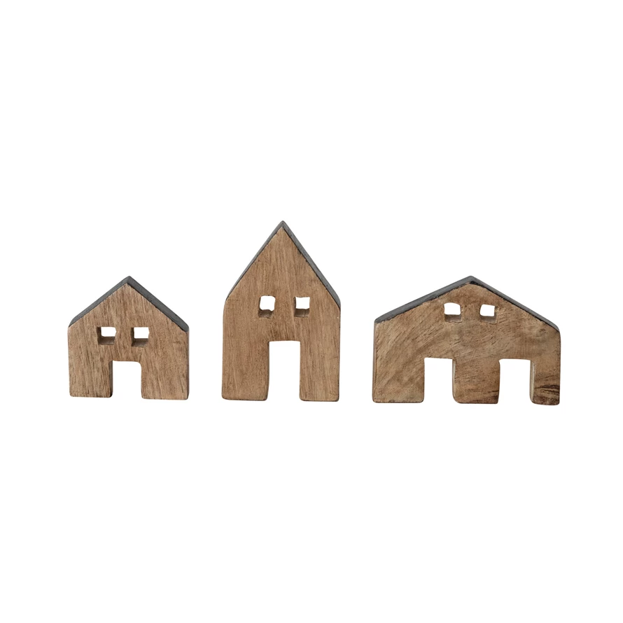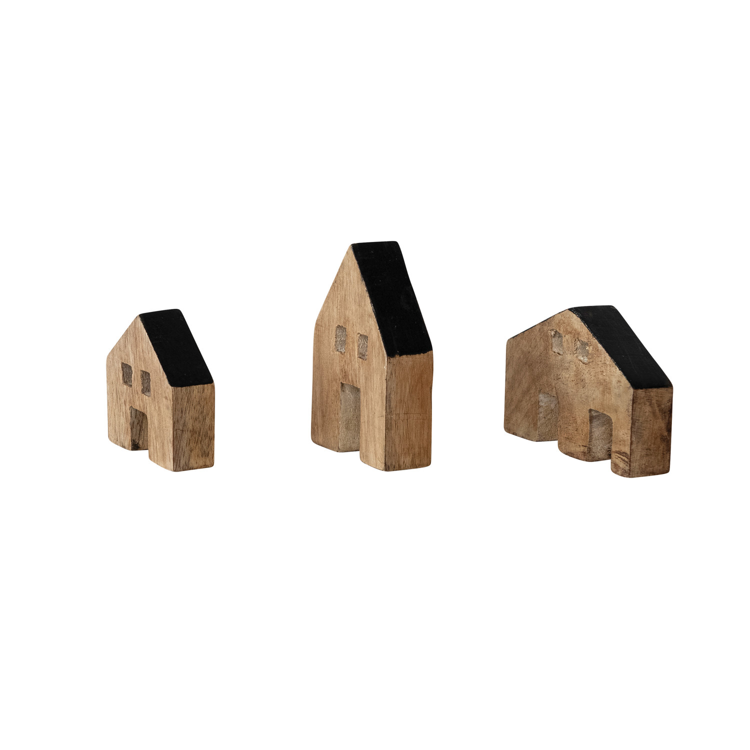 Catalog Name: 3"H & 2"H Mango Wood Houses w/ Black Edges, Natural, Set of 3