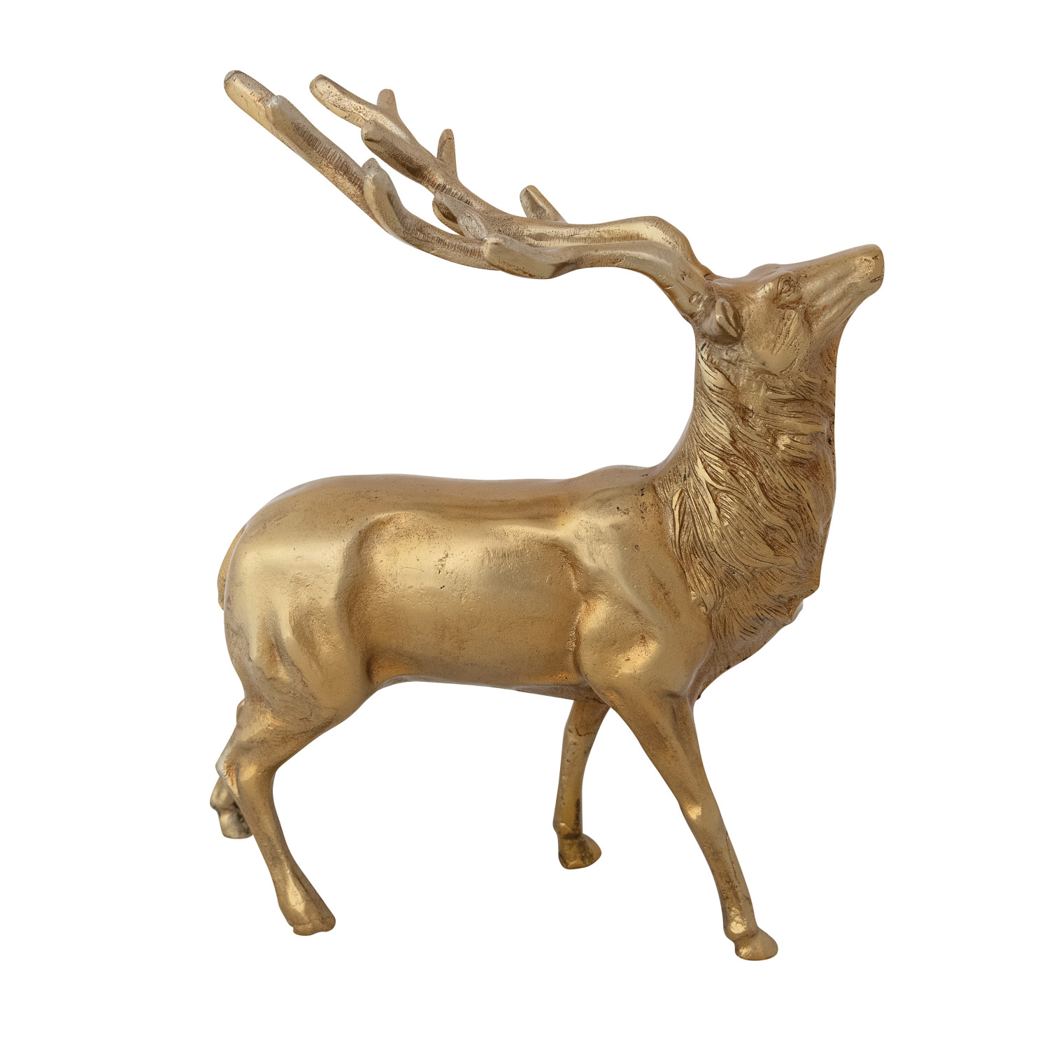 Catalog Name: 11"L x 5"W x 13-1/2"H Cast Aluminum Deer, Gold Finish, Truck Ship