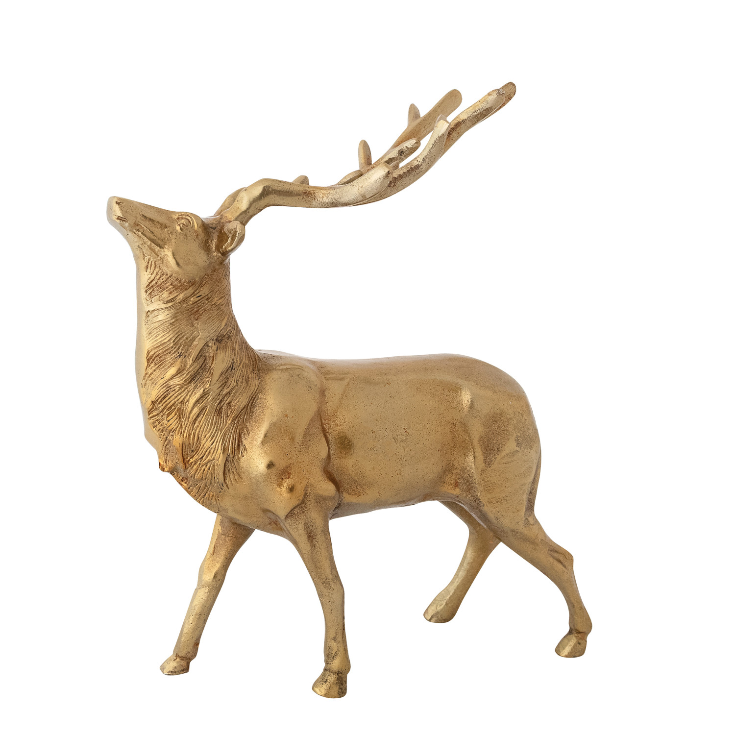Catalog Name: 11"L x 5"W x 13-1/2"H Cast Aluminum Deer, Gold Finish, Truck Ship