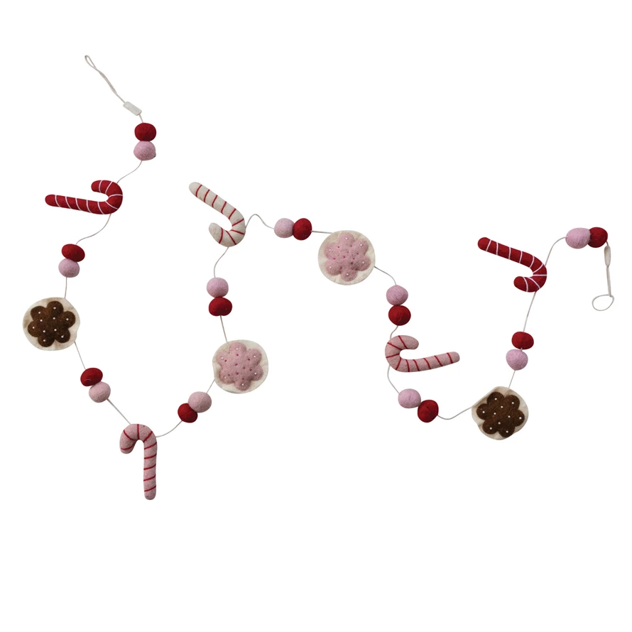 Catalog Name: 72"L x 4-1/4"H Handmade Wool Felt Candy Cane & Cookie Garland w/ Embroidery, Multi Color