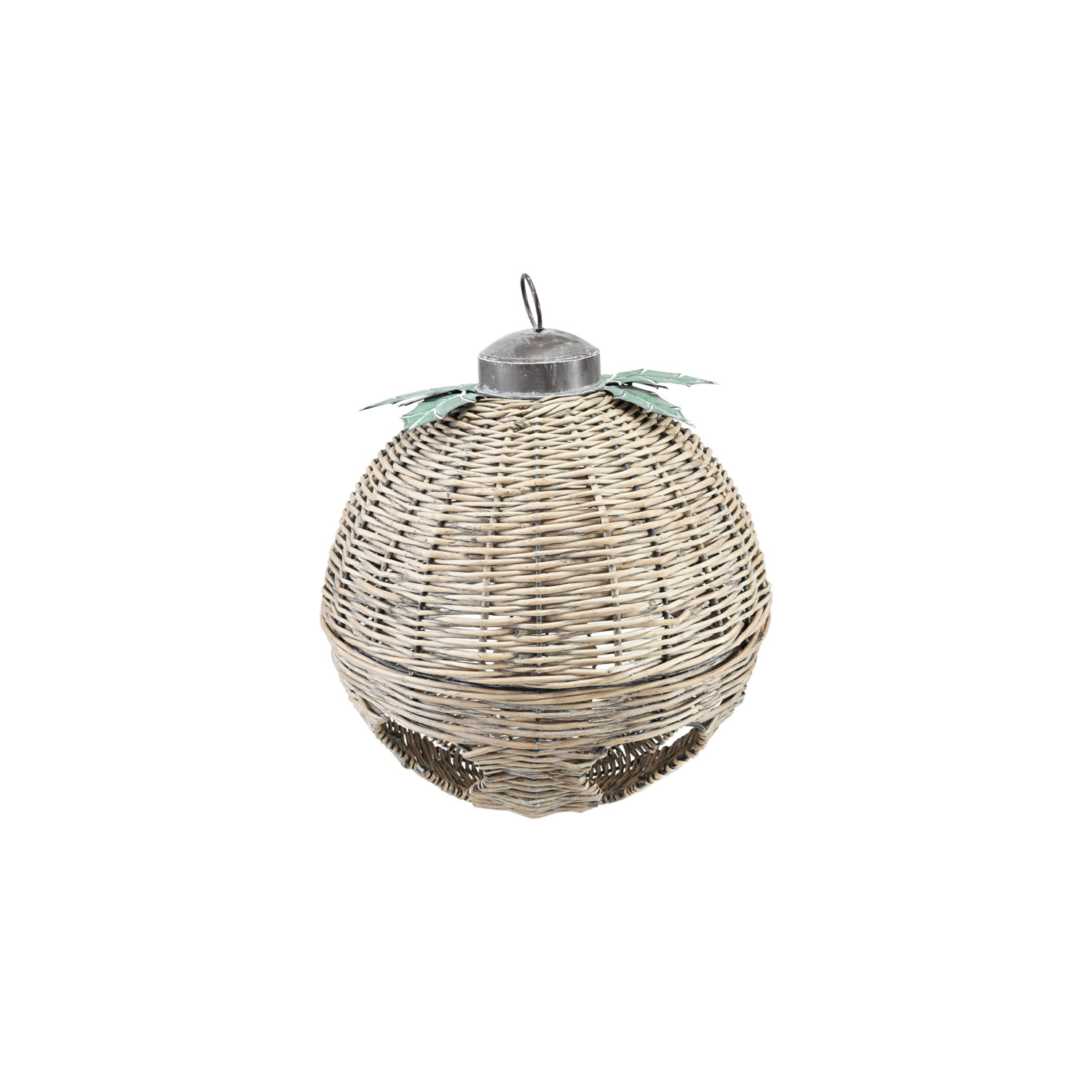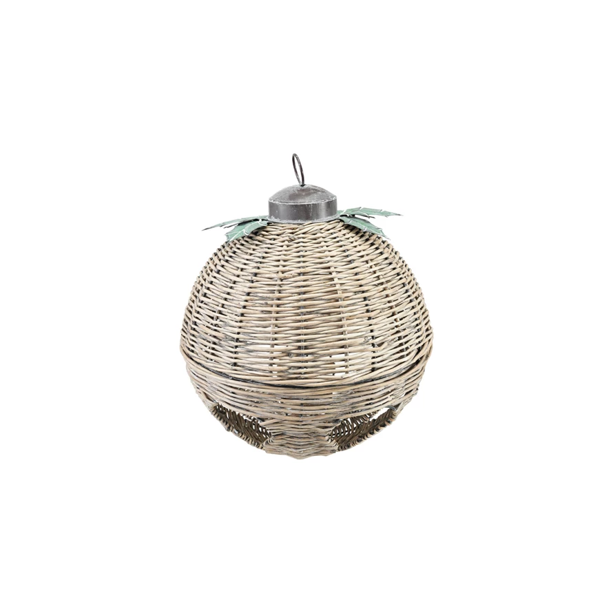 Catalog Name: 18-1/2" Round x 22-1/2"H Oversized Hand-Woven Rattan Bell w/ Metal Leaves, Natural, KD