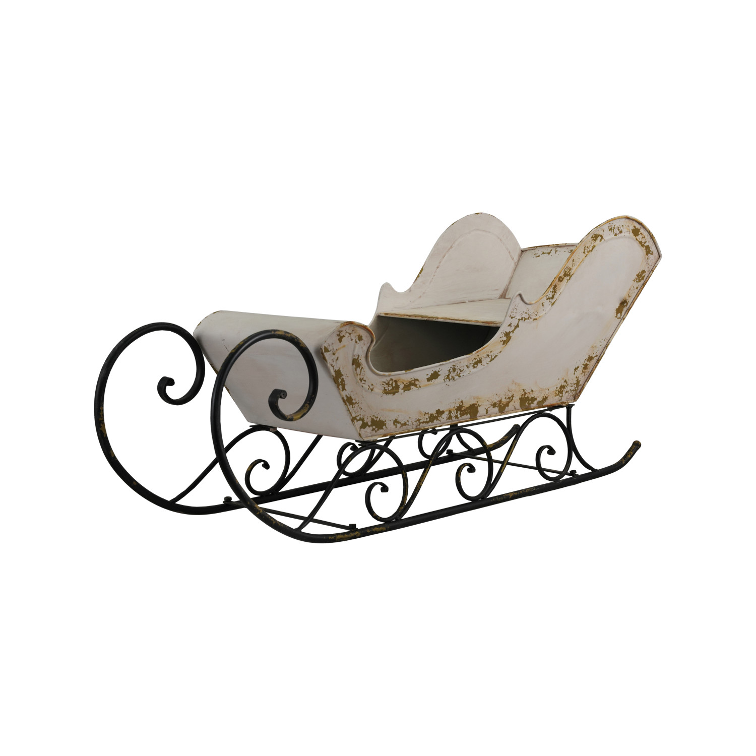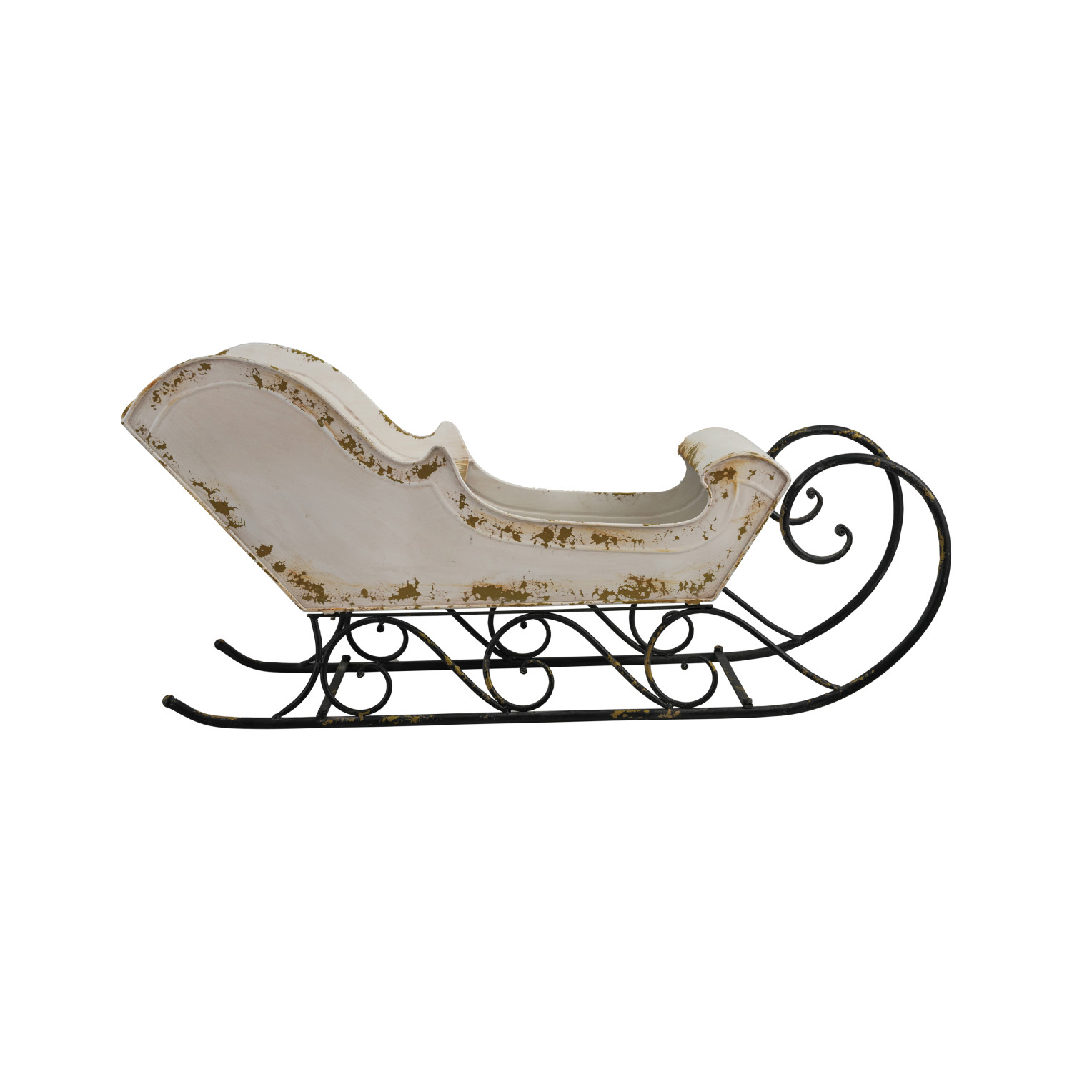 Catalog Name: 35"L x 12"W x 16-1/2"H Metal Sleigh, Distressed Finish, Antique White & Black