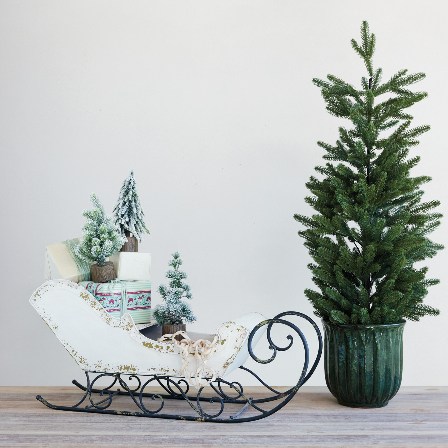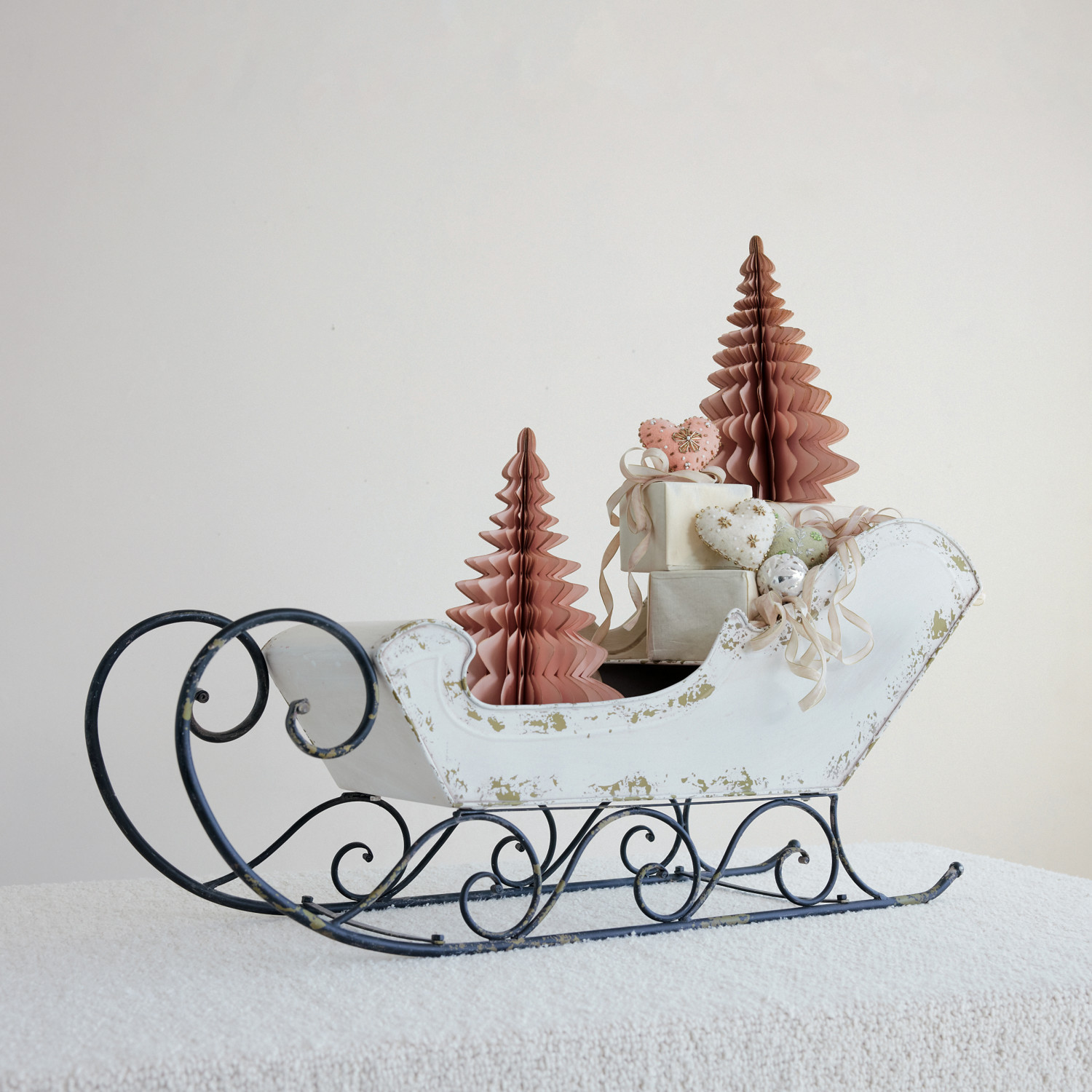 Metal Sleigh, Antique White & Black
