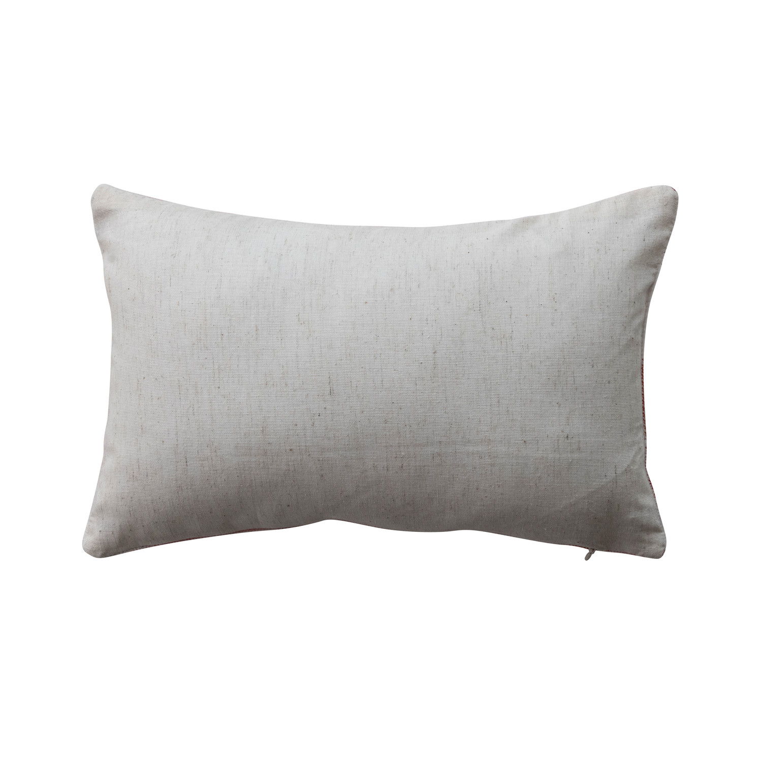 Catalog Name: 14"L x 9"H Cotton & Velvet Embroidered Lumbar Pillow w/ Geometric Pattern "Prosecco HO HO HO", Pink, Orange Color & Natural