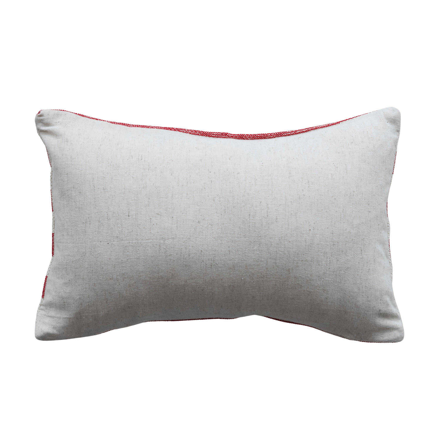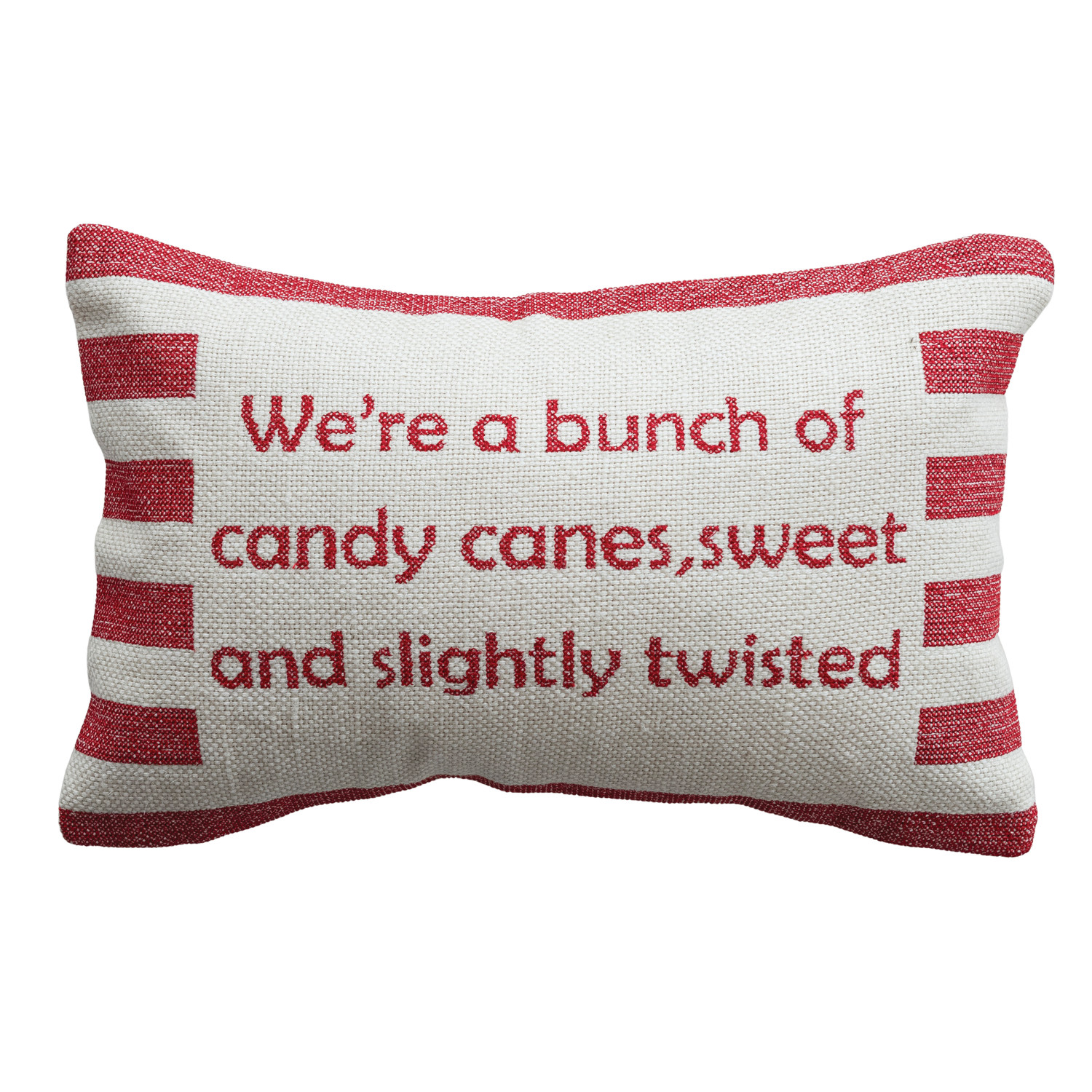 Catalog Name: 14"L x 9"H Cotton Embroidered Lumbar Pillow w/ Stripes "We're A Bunch Of Candy Canes...", Red & Natural
