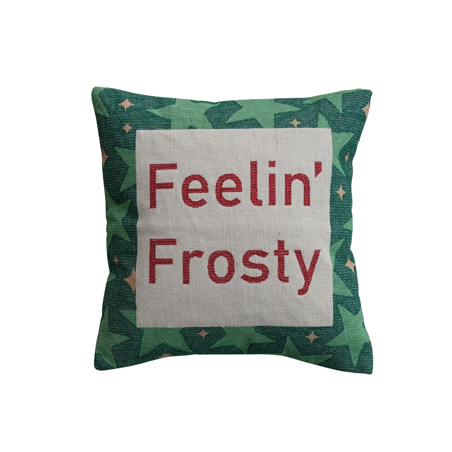 16" Square Cotton Embroidered Pillow with Star Pattern "Feelin' Frosty"
