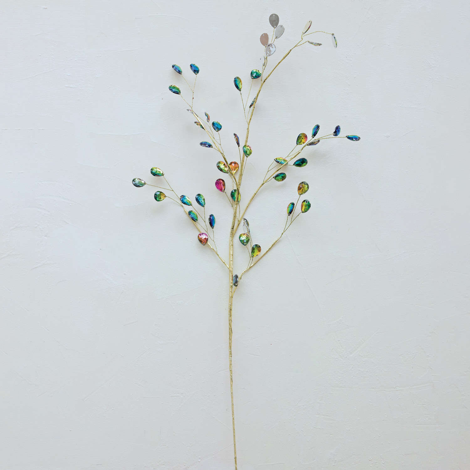 Faux Botanical Spray with Iridescent Acrylic Jewels, Gold Finish