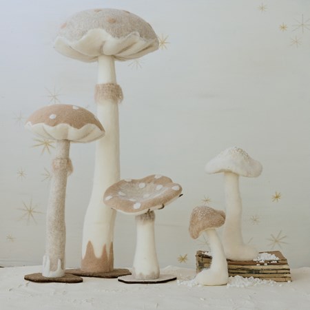 Catalog Name: 13" Round x 32-1/2"H Foam & Fabric Mushroom on Base, Cream Color & Brown