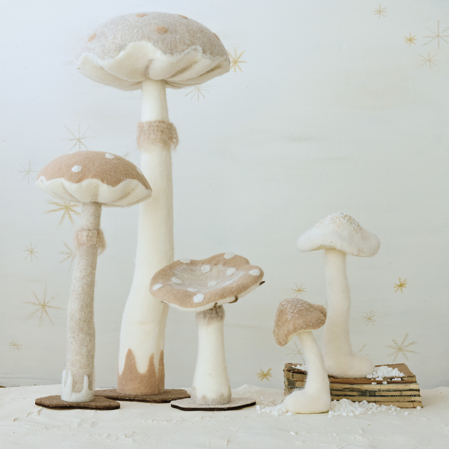 Catalog Name: 13" Round x 32-1/2"H Foam & Fabric Mushroom on Base, Cream Color & Brown