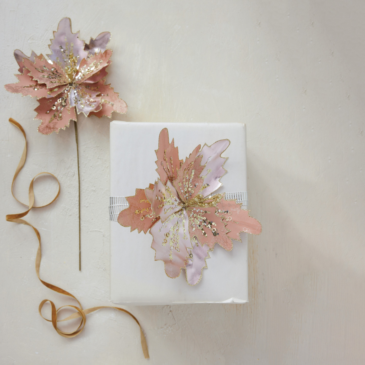 Faux Flower Pick with Glitter, Gold Finish & Blush Color